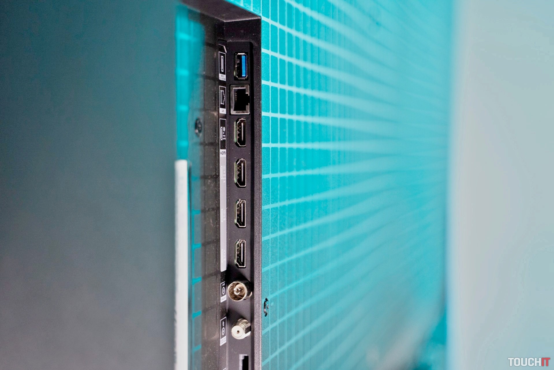 K dispozícii sú štyri vstupy HDMI na pripojenie externých zdrojov, ako aj USB, optický, LAN a satelitný tuner. eARC je podporovaný na HDMI 1 na rýchle prenášanie zvuku do soundbarov alebo AV prijímačov.