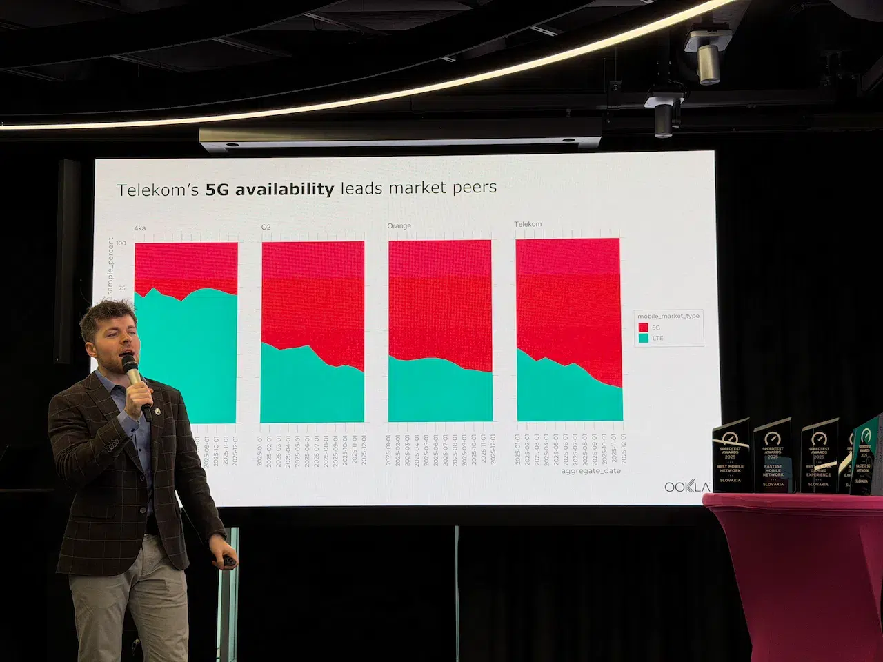 Telekom má najlepšiu a najrýchlejšiu mobilnú sieť, ako aj najlepšiu a najrýchlejšiu 5G sieť na Slovensku. Vyplýva to z hodnotenia renomovanej analytickej spoločnosti Ookla, ktorá Telekomu udelila šesť ocenení Ookla Speedtest Awards za druhý polrok 2025.