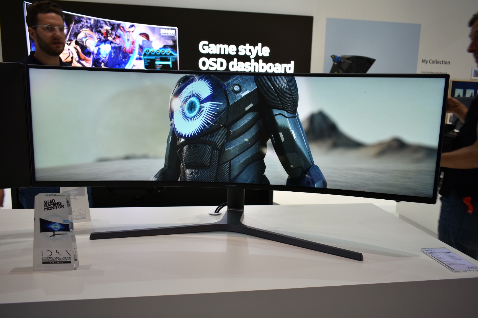 Monitor, aký ste doteraz nevideli Naživo sme si mohli pozrieť aj nedávno predstavený najväčší herný monitor na svete s technológiou QLED. Samsung CHG90 ponúka 49-palcovú uhlopriečku s rozlíšením 3840 × 1080, podporu HDR, odozvu 1 ms a pomer strán 32:9. Hráčov určite poteší obnovovacia frekvencia 144 Hz.Samsung CHG90