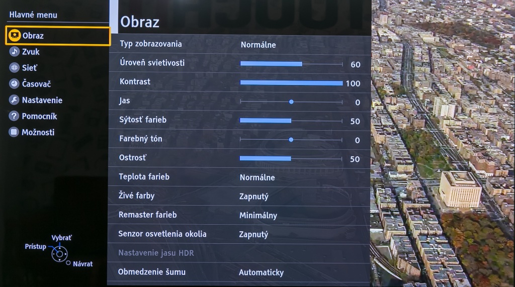 Panasonic už dávanejšie založil úspech svojich OLED televízorov na skúsenostiach, ktoré mal ešte s výrobou plazmových modelov. Aktuálne spolupracuje s hollywoodskymi štúdiami ako je Deluxe a tiež postprodukčnými štúdiami Company 3, EFILM a Encore. OLED televízor FZ950 má aj certifikáciu Ultra HD Premium a THX 4K. To, že Panasonic do svojho televízora použil výkonný procesor a nový OLED displej, prináša pre diváka lepšie podanie čiernej farby a farebný rozsah jednej miliardy odtieňov. Farebná škála teraz pokrýva 100 % farebného priestoru DCI. Aj v tmavých častiach obrazu tak odhalíte jemné detaily. Rovnako prirodzene vyzerajú aj scény so strednou úrovňou jasu. Pritom FZ950 využíva dynamickú vyhľadávaciu tabuľku prispôsobenú konkrétnej zobrazovanej scéne. Do farebnej palety vyhľadávacej tabuľky Panasonic pridal viac tmavších odtieňov a uvidíte to na jemnejšom prechode zo sýto čiernej na takmer čiernu. Televízor Panasonic FZ950 používajú režiséri v štúdiu na to, aby si pozreli, ako bude vyzerať obraz ich filmu tak, ako ho môžete uvidieť vy u vás doma. Práve preto je tu rozšírený rozsah a skrátený interval medzi kalibračnými krokmi na najtmavšom konci RGB a gamma palety. Na displeji má FZ950 nanesený filter označený ako Absolute Black, ktorý do istej miery zabraňuje odleskom na ploche displeja. To býva nepríjemné hlavne pri zobrazení tmavých scén počas slnečného dňa. Podporu HDR sme vyskúšali na službe Netflix, mimo YouTube je to zatiaľ jeden z mála zdrojov, pri ktorom to v slovenských podmienkach môžete využiť. A s takýmto televízorom je asi Netflix nevyhnutnosťou, Panasonic má aplikáciu pre tento zdroj priamo vo svojej výbave. Podobne aj Amazon Prime Video. Súčasťou FZ950 sú aj dva satelitné tunery a šachty pre dekódovacie karty. Z ďalších prepojení sú to dve šachty na SD kartu, štyri HDMI, tri USB porty, LAN, Bluetooth a Wi-Fi. Televízor disponuje aj podporou HLG. Priemernú elektrickú spotrebu sme namerali na hodnote 162 W.