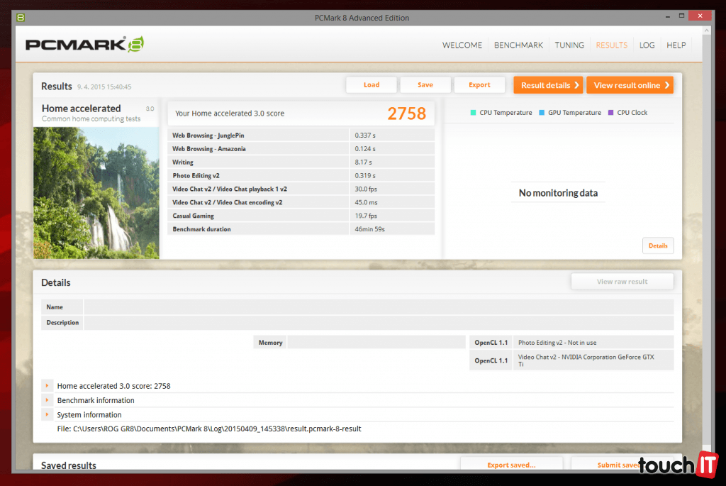 Rozdiel vo výkonnosti oboch kariet je síce malý, ale GTX 860M je o niečo slabšia. Pri pohľade na vlastnosti grafického čipu sme nezaznamenali žiadne rozdiely v porovnaní s herným notebookom Alienware, ktorý má totožnú kartu. Hoci môžete experimentovať s miernym pretaktovaním, čip má v základnom balení štandardné parametre. Dodajme však, že sme mali k dispozícii PR vzorku počítača, ktorý nie je určený pre bežný predaj. Bez ohľadu na to, či je označenie grafickej karty chybou softvéru, v predajnej verzii by mal byť čip GTX 750 Ti. Hardvérovú výbavu dopĺňa 8 GB operačná pamäť, ktorá je rozšíriteľná na 16 GB RAM a 1 TB pevný disk. Privítali by sme SSD úložisko (to je dostupné v alternatívnej konfigurácii), avšak faktom ostáva, že pri hrách pravdepodobne oceníte skôr väčší ukladací priestor ako rýchlejší. Aby sme to zhrnuli – ASUS ROG GR8 je v podstate herný notebook bez displeja a v kompaktnom šasi. Tomuto tvrdeniu zodpovedá hardvérová výbava, výkon, spotreba aj minimálny hluk počas prevádzky.S hrami si poradí, ale…