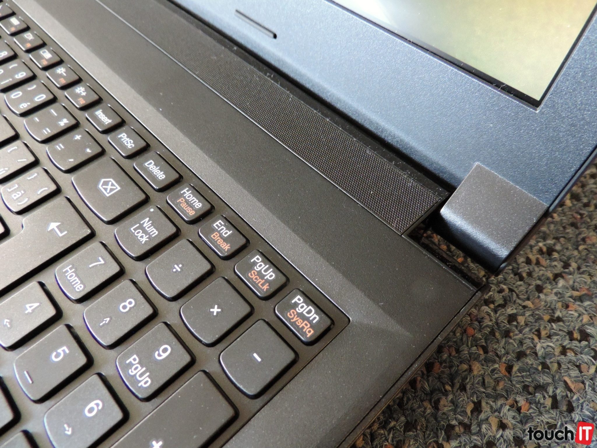 Telo je plastové. To v tejto kategórii nie je ničím výnimočné, skôr pravidlom. Rozmerné telo umožnilo integráciu plnohodnotnej klávesnice. Avšak aj tu, ako je v obľube značky Lenovo, zasahuje pravá šípka do numerického bloku. Treba si na to chvíľu zvykať, ale nevnímame to v zásade ako nejakú prekážku. Touchpad je vzhľadom na rozmer notebooku menší, pravdepodobne však aj tak väčšina z používateľov na ovládanie pripojí klasickú myš. Ocenili sme však, že touchpad používa obe tlačidlá myši oddelene, dotyková podložka nie je teda zároveň ako tlačidlo. Pod numerickým blokom je čítačka odtlačkov prstov. Je to výborná vec a ocenili sme jej prítomnosť aj v tomto lacnejšom modeli. Na trhu sú rôzne konfigurácie, medzi nimi aj modely s a bez optickej mechaniky. Každý má teda na výber a ako univerzálny počítač sa nám viac pozdával práve variant s DVD prepisovačkou. Kĺb veka je dostatočne pevný a otvoriť si ho môžete zhruba do uhlu 110°. Veko je mierne pružné, no dostatočne bude chrániť notebook aj v prípadoch, kedy ho použijete ako podložku pod tanier s jedlom. Medzi plastom a displejom je dostatočná rezerva. Až silnejší tlak vytvára len veľmi jemné deformácie na displeji. Stereo reproduktory sú umiestnené nad klávesnicou pod kovovou mriežkou s miniatúrnymi dierkami.
