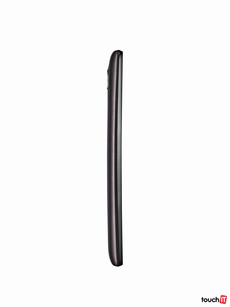 Verziu v koži sme videli, no aj tak nemáme pocit, že plastový kryt s diamantovým vzorom a vystúpeným povrchom je menej hodnotný. Vyzerá inak a nám sa napríklad takáto kombinácia páči. Je to o vkuse a pre technologicky špičkovo vybavený nám viac „sedí“ plast, ako koža. Na celkovej hmotnosti sa pozitívne prejavilo použitie plastov. Hliník nám vôbec nechýba a aj napriek tomu je telefón podstatne odolnejší. Treba však počítať, že plastové telo je náchylné na pošmyknutie. Ľahko teda telefón posuniete zo stola, no z praxe vieme, že pády mu príliš neublížia. Má totiž mierne prehnutý displej, hoci Flex 2 to nie je. Ten ho chráni pri páde prednou stranou. Zadná zaoblená zase pri dopade opačnou stranou. Zošikmené sú aj hrany. Dobre sa drží v ruke a výrobca zaoblenie prezentuje ako dôvod, prečo by sa mal lepšie nosiť v nohaviciach. Nám sa to až tak nepotvrdilo, keďže telefón sám o sebe je rozmernejší.