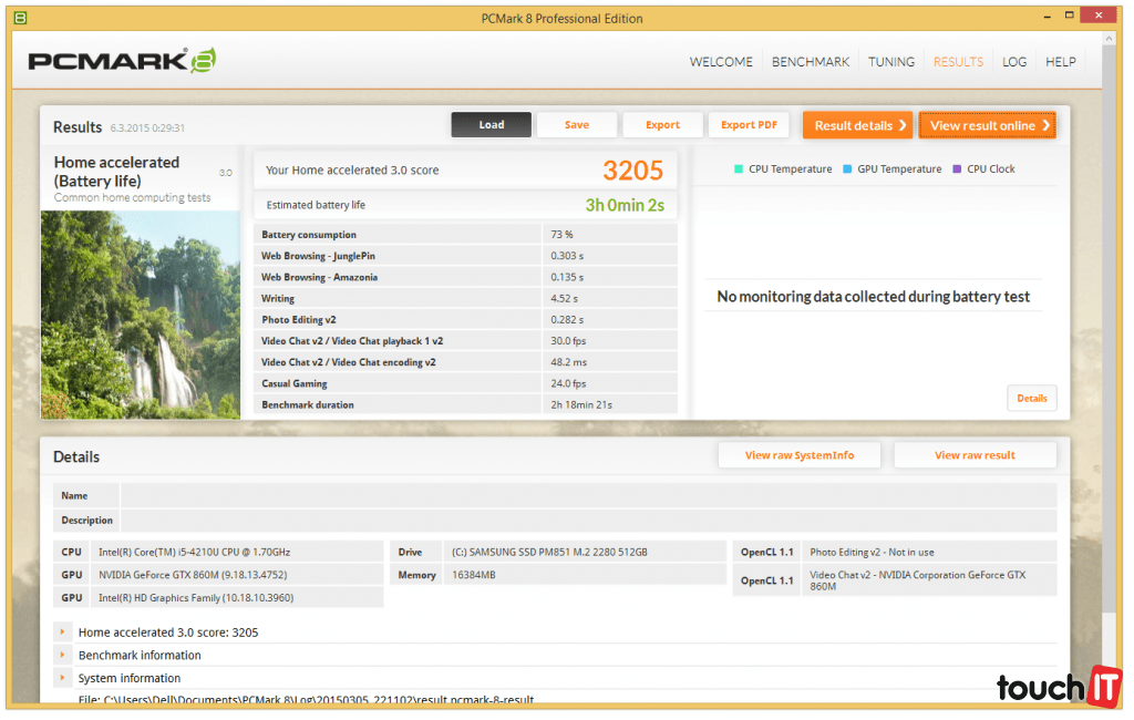 Rôznorodá konfigurácia postihuje takmer všetky komponenty, ktoré sú v notebooku použité. Dizajn a plastová konštrukcia s použitím uhlíkových vlákien sa však nemenia. Takisto ostávajú aj rozmery a hmotnosť. Alienware 13 spolieha na nenápadné telo, ktoré príliš pozornosti nevzbudzuje a neohúri vás na prvý pohľad (a dotyk) tak ako niektorí jeho konkurenti. Nakoľko je to problém, si musí zvážiť používateľ sám. Veku však dominuje menšia lebka mimozemšťana a dva podsvietené pruhy. Podobným spôsobom je zvýraznená aj samotná klávesnica a nápis ALIENWARE pod displejom. Vráťme sa späť ku konfigurácií. Testovali sme model, ktorý je vybavený procesorom Intel Core i5-4210U s taktom 1,70 až 2,40 GHz. Operačná pamäť bola v našom prípade 16 GB a o grafický výkon sa starala dedikovaná karta GeForce GTX 860M. Táto výbava (s výnimkou operačnej pamäte) už dnes nepatrí medzi to najlepšie, čo trh ponúka. Na druhej strane, aktuálna webová stránka produktu umožňuje zostaviť konfiguráciu s procesorom Intel Core i7-5500U a grafickou kartou GeForce GTX 960M. Takáto zostava je samozrejme výkonnostne niekde úplne inde v porovnaní s modelom, ktorý sme mali k dispozícii. Nasledujúce riadky, venované vyhodnoteniu testov, preto berte s rezervou. Alienware 13 si kúpite aj v takej zostave, ktorú sme testovali. Avšak, ak máte dostatok peňazí, postavíte si skutočné „delo„. Notebook sme zaťažili v hrách samotných, ale aj pomocou overených nástrojov. Za zmienku stojí výsledok testu Fire Strike v aktuálnej edícii programu 3DMark. Alienware získal 3079 bodov, čo je podľa spoločnosti Futuremark o trochu menej, ako by mal dnes dosahovať herný notebook. Pre porovnanie, konkurenčný herný notebook nazbieral v tomto teste až 8438 bodov (s procesorom Intel Core i7-4860HQ a grafickou kartou NVIDIA GeForce GTX 980M). Spomeňme 1458 bodov v Extreme teste 3DMarku 11 a 3205 bodov v PCMarku 8.