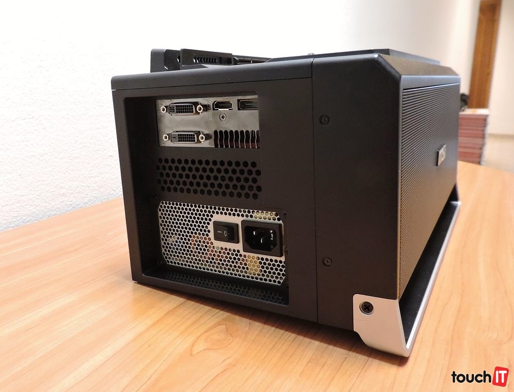 notebook je treba pripojiť a odpojiť vo vypnutom stave), eternetový a audio konektory a takisto štvoricu USB 3.0 portov. Na druhom boku je umiestnená konektivita k monitoru, ktorá sa odlišuje podľa grafickej karty. V našom prípade sme mali k dispozícii HDMI, DisplayPort a a dvakrát DVI výstup.