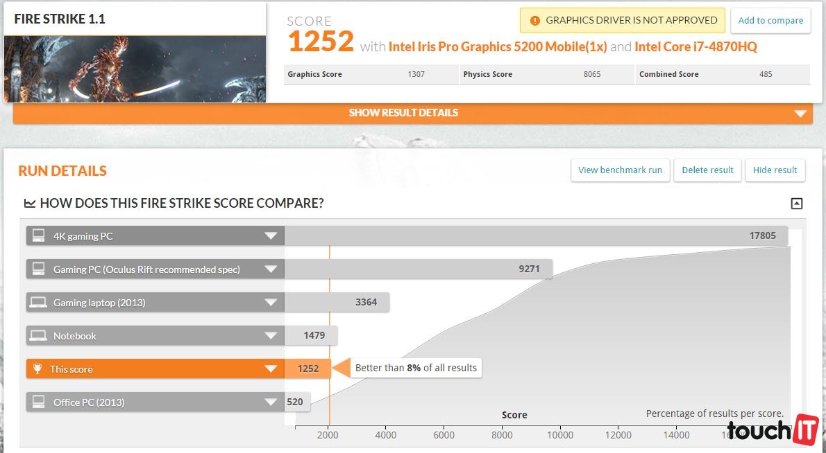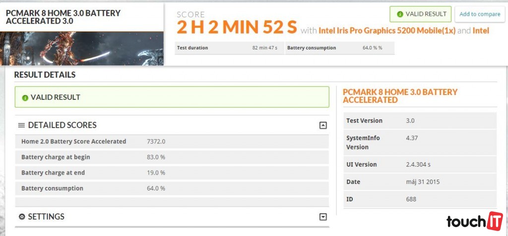nami testovaná vzorka mala čip i7-4870HQ, k dispozícii sú aj novšie modely s procesormi 5950HQ / 5700HQ) a integrovanú grafickú kartu Intel Iris Pro Graphics 5200. Táto GPU je v kategórii integrovaných riešení kráľom a výkonom sa dosahuje na niektoré dedikované (