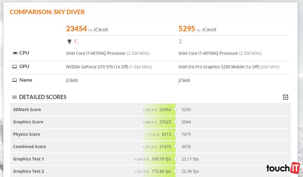 V prípade modelu od MSI sme mali k dispozícii model NVIDIA GeForce GTX 970. V kombinácii s procesorom v notebooku bol dostupný výkon výborný a hry fungovali bez problémov. Opäť musíme porovnať s Alienwareom, ktorý mal s niektorými titulmi (