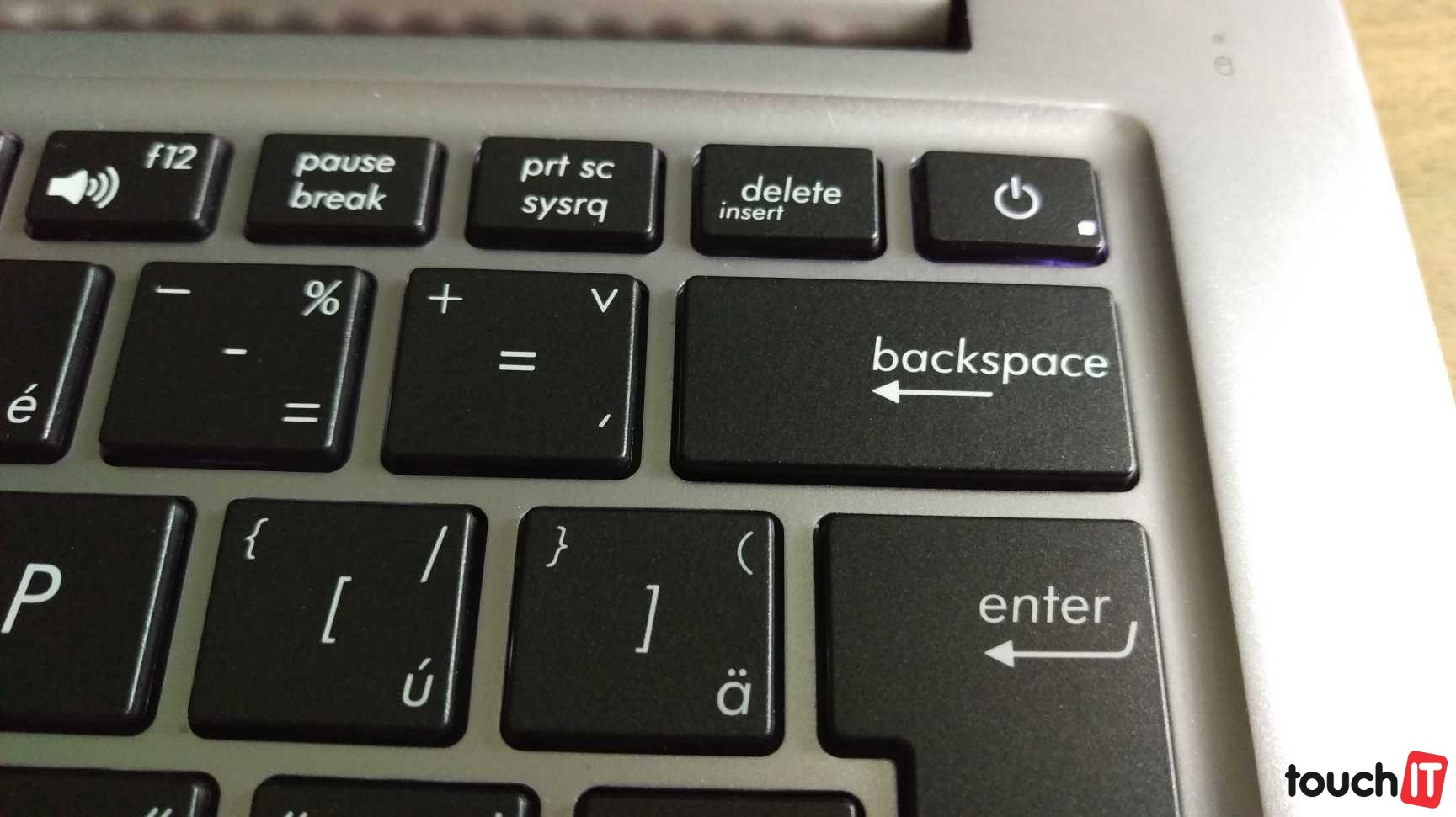 Klávesnica má 3 stupne podsvietenia a hlavné klávesy majú štandardný rozmer, zmenšené sú len šípky a klávesy F. Pri šípkach nám zmenšenie vôbec neprekážalo, nakoľko nie sú tak natlačené do hlavného bloku klávesnice. Tradične výrobca umiestnil aj tlačidlo na vypnutie nad Backspace. Kým si naň zvyknete, párkrát si uspíte počítač. Keďže nie sme na polohu tohto klávesu zvyknutí, v systéme sme vypli jeho funkciu. Pri jeho stlačením omylom sa tak nič nedialo.