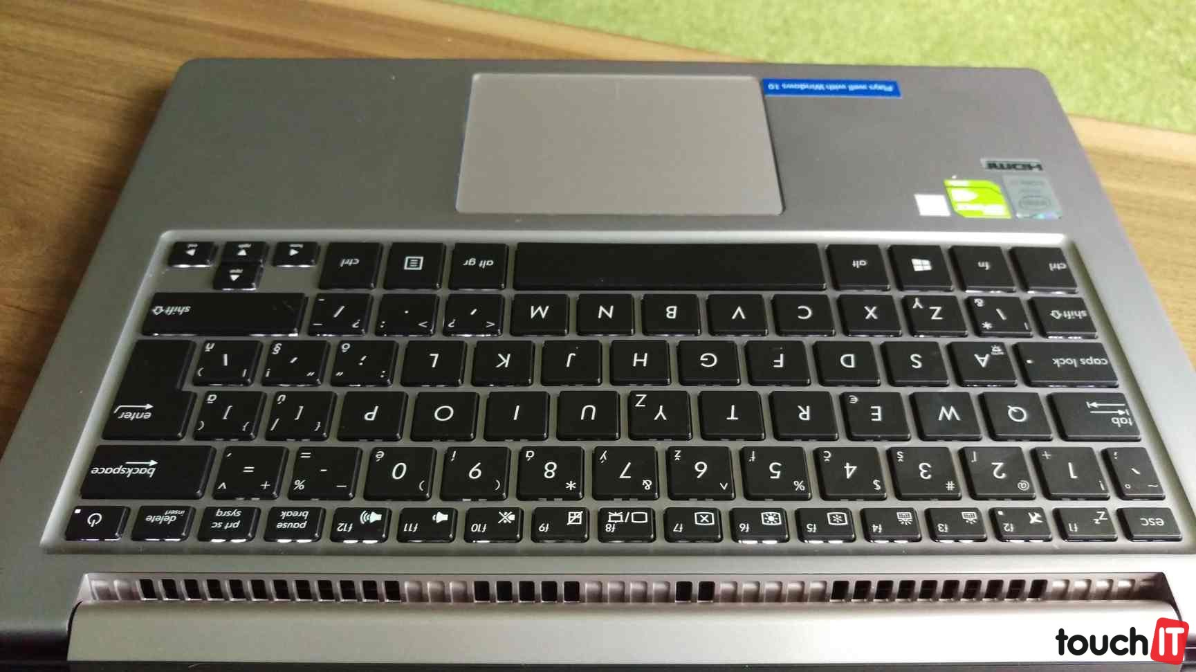 Tradične sa podaril aj touchpad, ktorý sa dá veľmi dobre použiť. Jeden z mála prenosných počítačov, pri ktorých nepotrebujete myš. A keďže Windows 10 sa blíži, nechýba ani nálepka informujúca o tom, že na tento stroj si pokojne môžete inovovať nový systém.