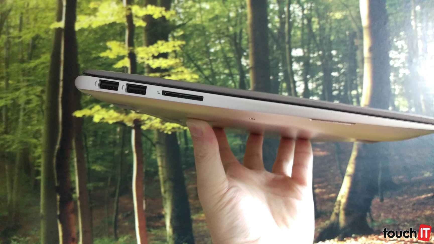 Výbava portov odpovedá rozmerom tela a účelu použitia. Toto nie je stolná pracovná stanica a tak zdanlivo menšia výbava portov nie je na škodu. V balení máte navyše redukciu VGA a LAN portu z USB. Celkovo ide o tichý počítač. Vyššie zahrievanie je len pri náročných úlohách. Navyše celohliníkové telo dobre chladí a opierka na dlane je vlažná, čo v lete určite oceníte.