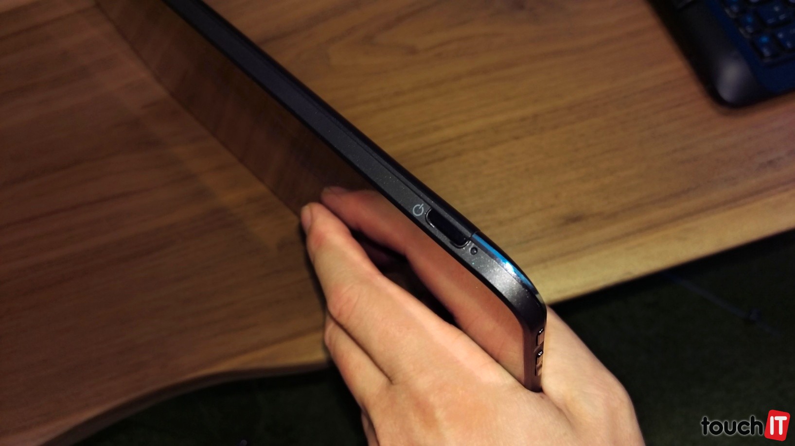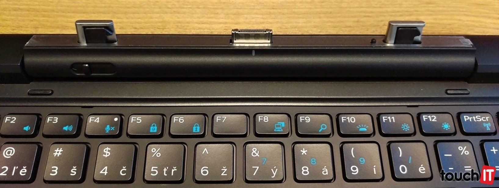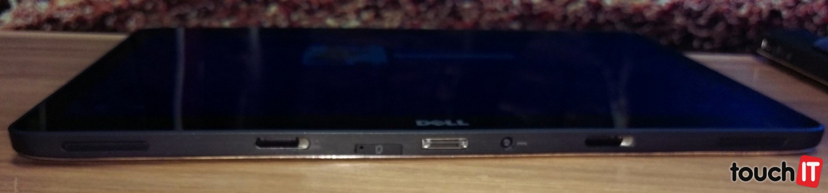 Výrobca viac počíta s tým, že pri práci budete využívať Latitude 7350 v režime notebooku a na iné aktivity v režime tabletu, kedy si odpojíte displej od základne. Vtedy totiž prídete o všetky konektory. Na spodnej hrane sú stereo reproduktory a dokovací konektor vrátane konektora na nabíjanie. Kvôli nabíjaniu teda nie je potrebné tablet dávať do docku s klávesnicou. Na tejto hrane je aj slot na SIM kartu. Tlačidlo na zapnutie je na hornej hrane a na boku v hornej časti je tlačidlo na uzamknutie orientácie displeja a ovládanie hlasitosti, oproti nim na ľavej rane je kombinovaný audio konektor.