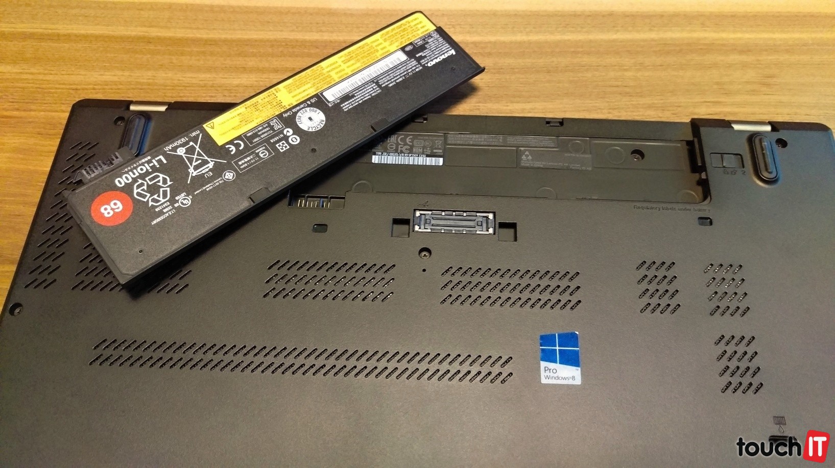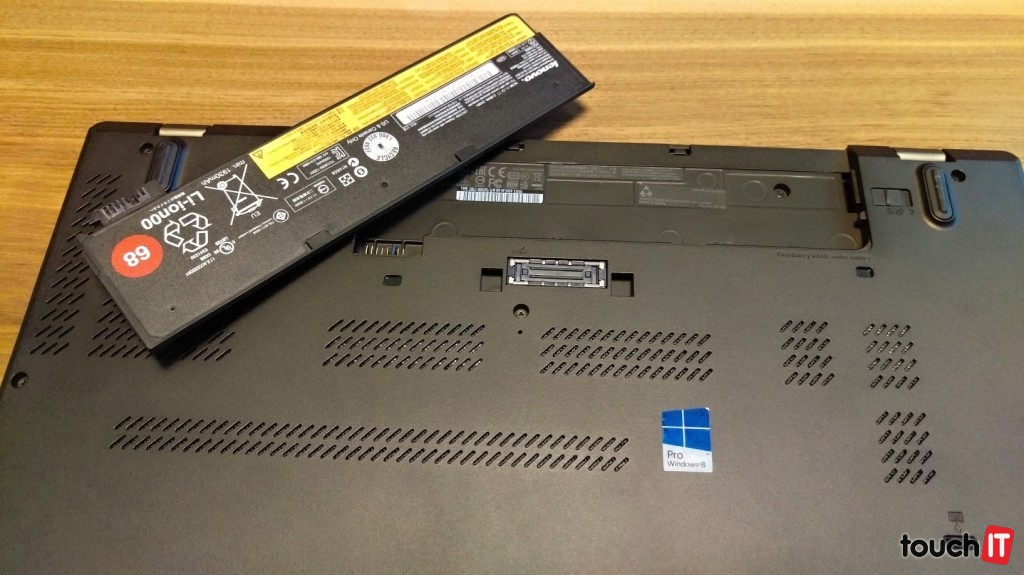 Absolútnou špičkou je výdrž. Notebook vydrží na batériu takmer 19 hodín. Sú tu totiž hneď dve. Jedna s možnosťou odnímania a teda výmeny priamo za behu. Technológia Power Bridge umožňuje vymeniť baterku, ktorá je súčasťou zadného tela. Kým ju vymeníte, úlohy sa ujme vstavaná baterka. Toto je vynikajúca vec, najmä ak si zoberiete notebook na cesty a do zásoby napríklad ďalší akumulátor. Pod akumulátorom bol v našej konfigurácii aj 3G/4G modul. Naspodku je dokovací konektor.