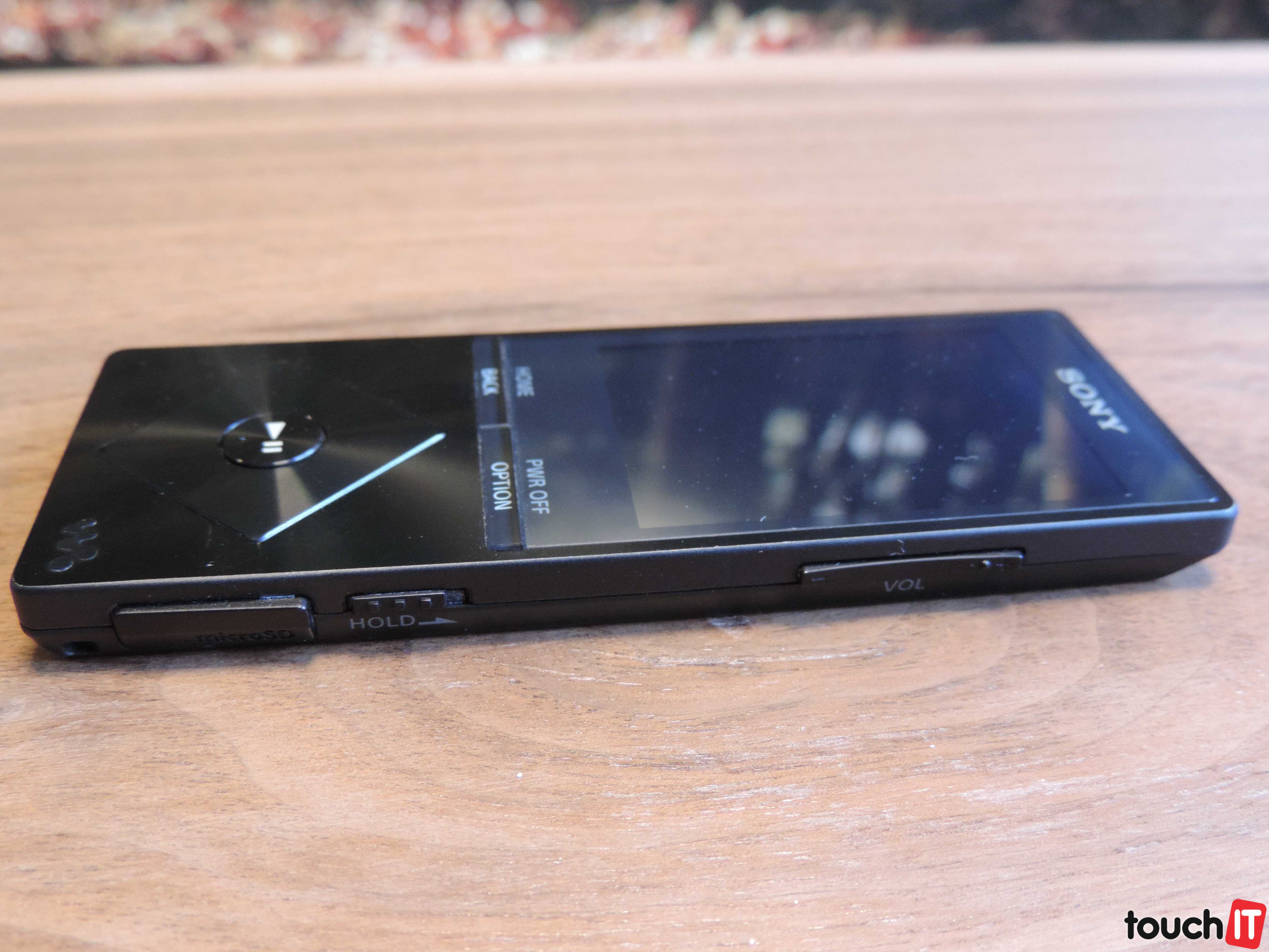 Tlačidlo na ovládanie hlasitosti a prepínač na zamknutie tlačidiel je na pravej hrane. Tu je aj slot na microSDXC kartu do kapacity 64 GB. Mali sme v zariadení aj pamäťovú kartu, no 16 GB nám bohato postačovalo. Aj na pravidelne sťahovaný audio podcasty aj na vlastnú hudbu. Zväčša hodinové mixy. Preto aj prechod z ClickWheelu, ktorým sme „jedným šmahom“ pretočili skladbu o 5 minút, bol menej pohodlný. Pomalé posúvanie prehrávanej pozície je vhodné na jemnejšie hľadanie správnej pozície. Ak je treba rýchlejšie posúvanie, treba hudbu pozastaviť a potom posúvať. Posúva sa rýchlosťou zhruba 1,5 min. / sekundu.