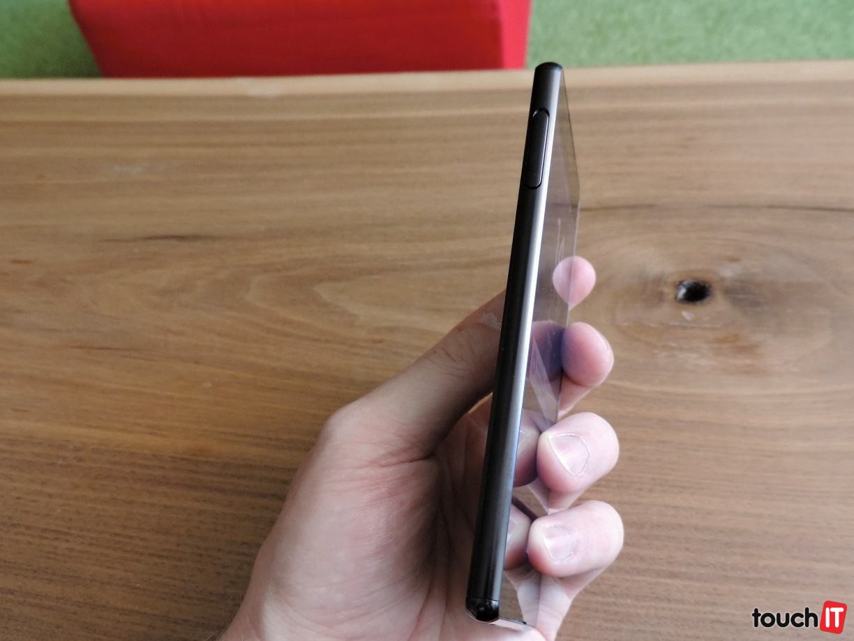 Dostupný je v štyroch farebných vyhotoveniach. Vyzerajú naozaj veľmi dobre. My sme ho dostali na test v čiernej farbe. Tá ale vyzerala obyčajne. Vhodná presne pre tých, ktorí nechcú pútať pozornosť. Z bočnej hrany zmizol magnetický konektor. Mnohí to ocenia, nakoľko predpokladáme, že vždy bude menšia skupina používateľov, ktorí si dokúpia príslušenstvo, napríklad v podobe dokovacej stanice s reproduktorom. Telefón má hliníkový rám. Ten je o niečo svetlejší a tak aspoň takto dotvára tieňovaný efekt k základnej farbe. Ľavá hrana má pod krytom plastový slot na microSDXC a Nano SIM kartu. Po jeho vybratí sa telefón reštartuje a nezáleží na tom, či ste tam mali alebo nemali kartu. Vo výsledku na tom, nebude záležať, pretože aj po prvom založení karty by sa musel reštartovať. Takto to spraví hneď po vybratí krytu. Pravá hrana má kruhové tlačidlo na vypnutie a tlačidlá na ovládanie hlasitosti a fotoaparátu. Spodok a vrch bezo zmeny, teda microUSB konektor a audio konektor hore. Zadná strana je chránená ochranným sklom proti škrabancom, odtlačky si bude treba poutierať. Páčilo sa nám zachovanie koncepcie a teda zapustenie fotoaparátu na úroveň zadnej strany. Dotykové tlačidlá sú súčasťou displeja, teda integrované v systéme. Škoda len väčšieho rámu nad a pod displejom. Bežne to mnohí nebudú nijak vnímať, no po prechode z telefónu, ktorý lepší pomer plochy displeja na prednej strane to bolo výrazne cítiť.