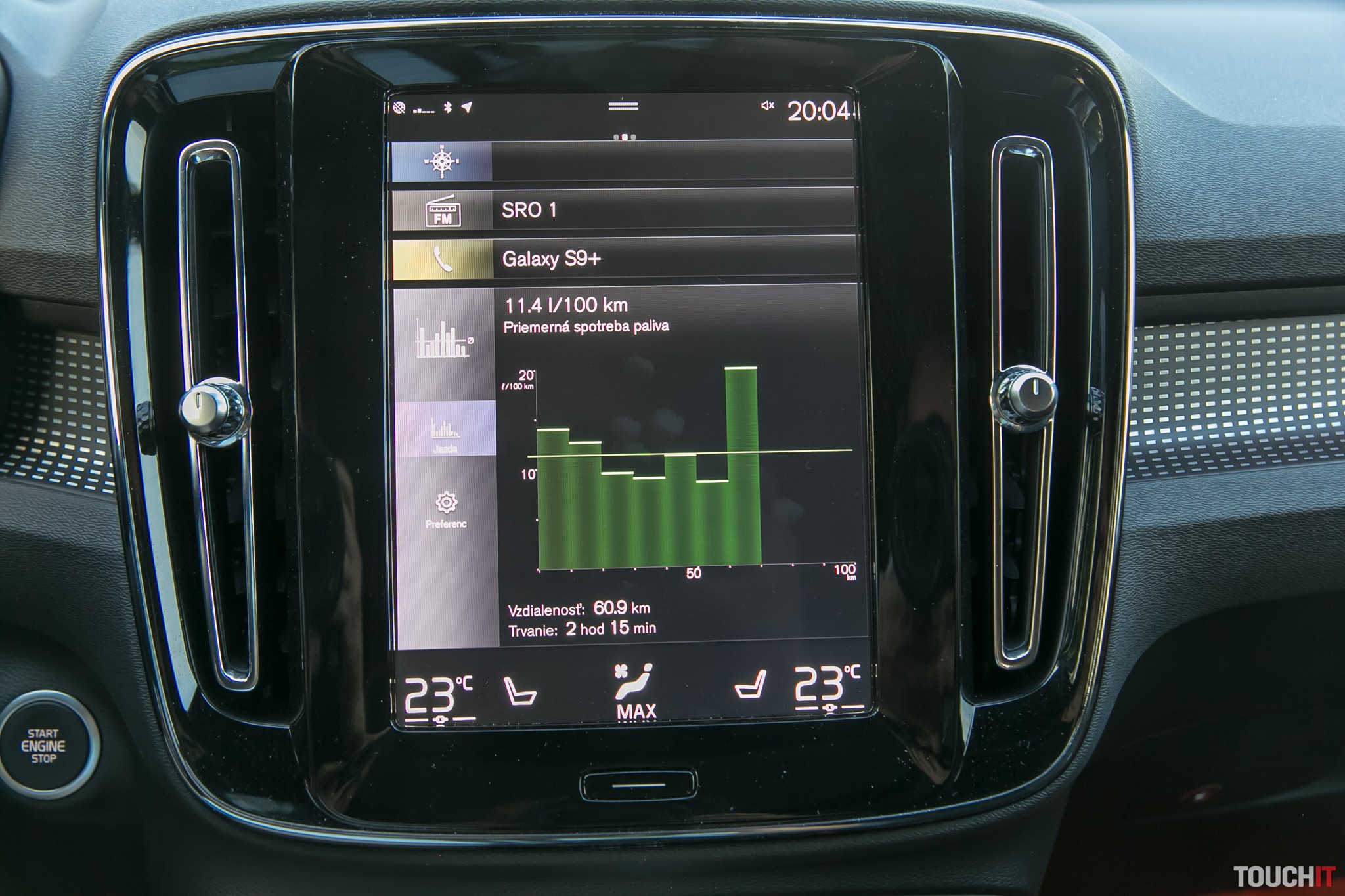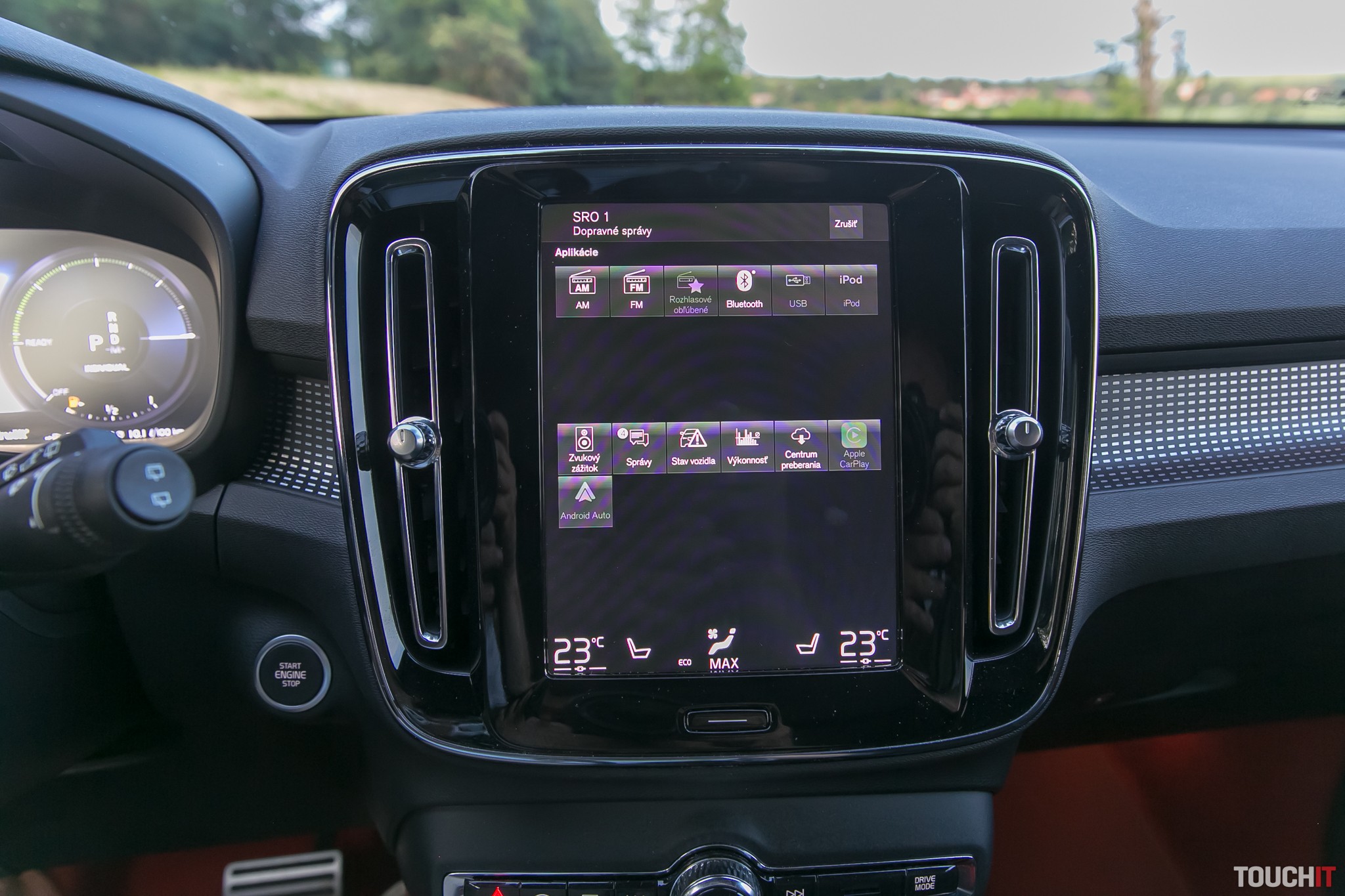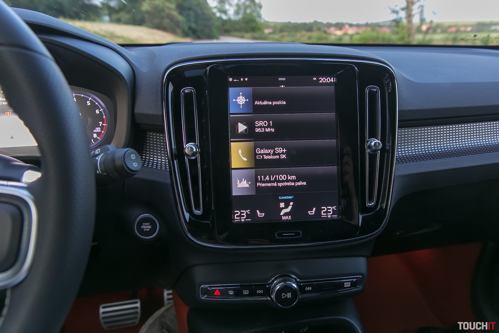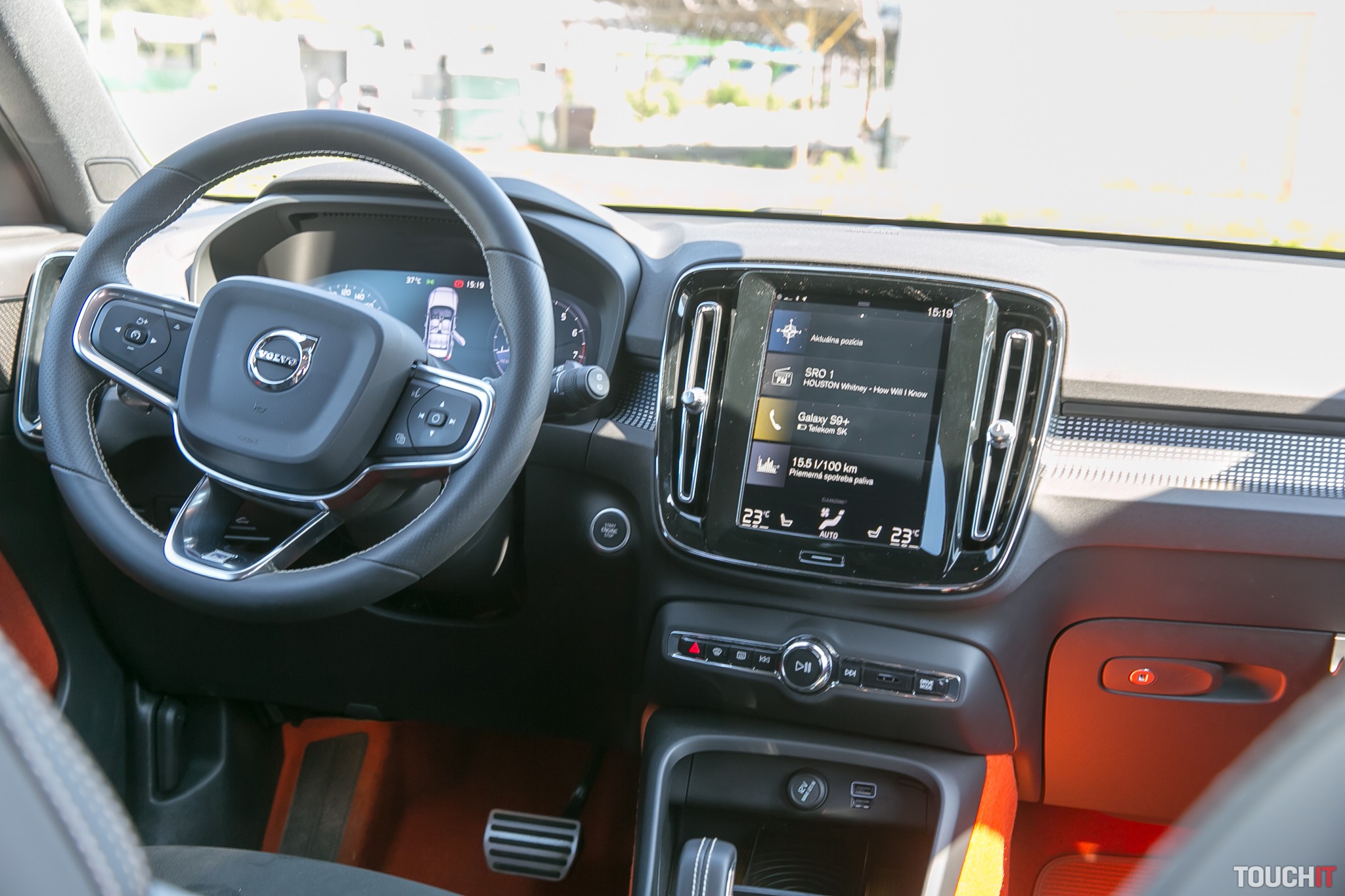 Prirodzená pre Volvo XC40 je podpora pre Apple CarPlay a Android Auto, rovnako ako bezdrôtové nabíjanie smartfónu s tým, že to môže byť poriadne veľký smartfón. My sme skúšali napr. Samsung Galaxy Note 8 a nemali sme problém.
