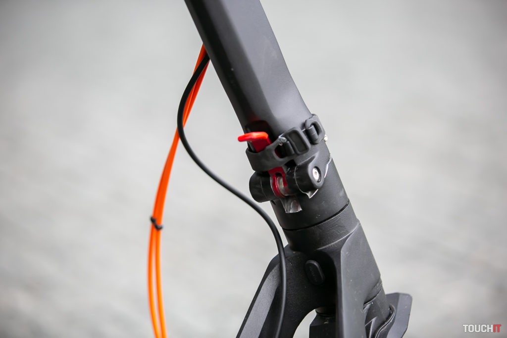 My sme mali k tejto kolobežke navyše požičanú aj tašku na príslušenstvo, sem sa zmestí celá nabíjačka a na volante sme mali namontovaný aj extra stabilný držiak na mobil.