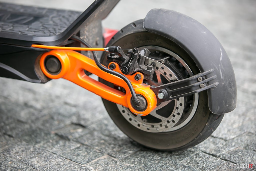 Nevadí jej dážď, dá sa s ňou bezpečne jazdiť v noci, je efektnej osvetlená. Podvozok je výškovo nastaviteľný a na brzdy sa môžete spoľahnúť. Podvozok je navyše odpružený, práve preto prejdete aj po hrboľatom teréne. Obe kolesá sú 10-palcové a plnené vzduchom, preto pomáhajú k celkovému odpruženiu. Dojazd 60 km samozrejme nedosiahnete, ak pôjdete stál na plný plyn. Vtedy počítajte tak s 35 km, veľa závisí od terénu a hmotnosti jazdca. Naopak, pri extra úspornej jazde sa môžete dostať aj výraznejšie nad 60 km. Doba nabíjania celkom vybitej batérie do 100 % je takmer 7 hodín.