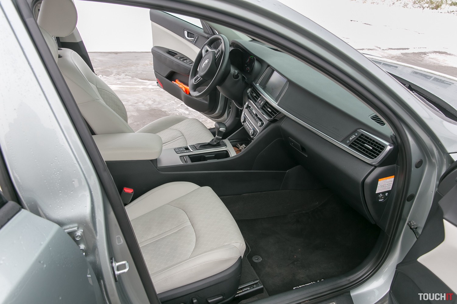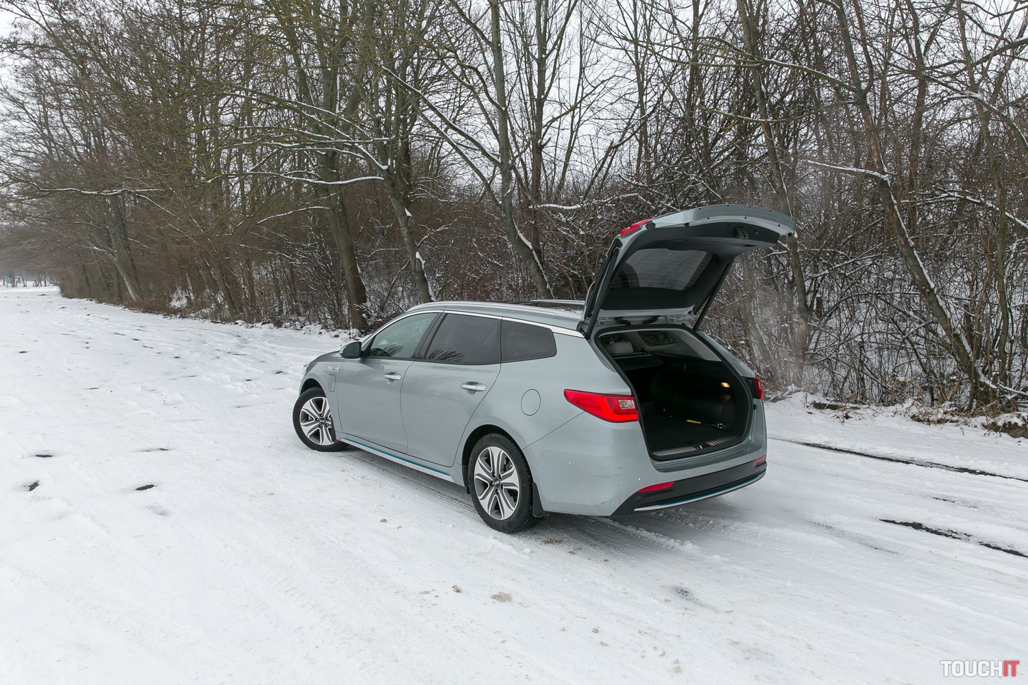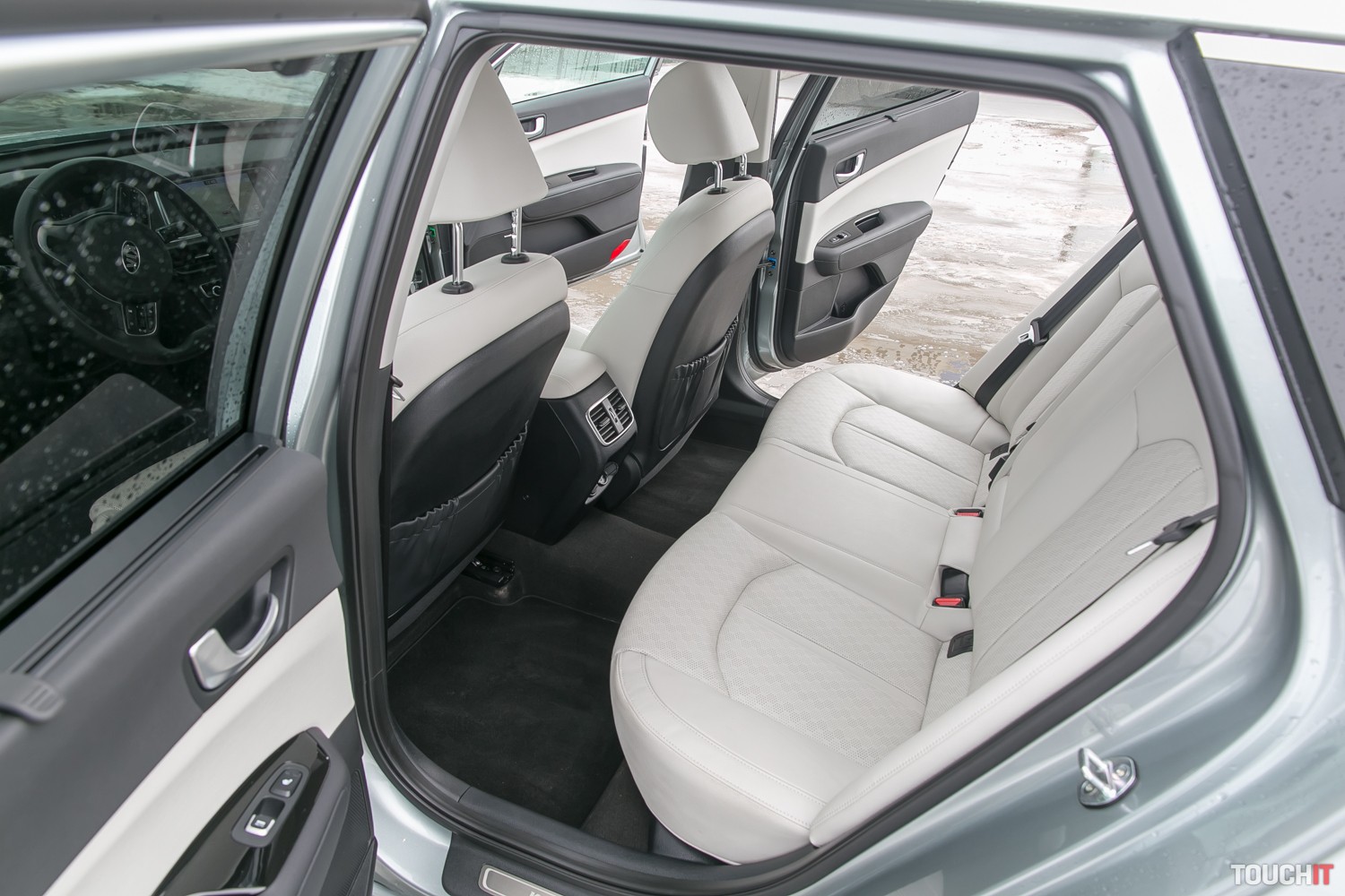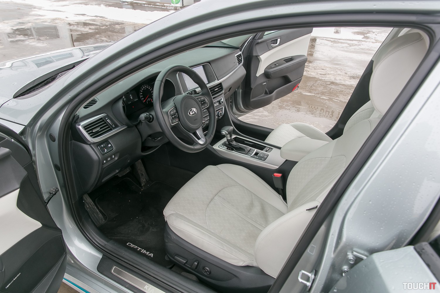 Popri športovo spracovanej karosérii nás zaujal vnútorný priestor, ktorý je skutočne veľkorysí. Vodič, spolujazdec, ale aj pasažieri vzadu majú dostatok životného priestoru z každej strany. A to aj v tom prípade, keď sedí vpredu 2 metrový chlap. Druhý rad sedadiel ponúka 3 miesta, ale len 2 sú plnohodnotné, stred je skôr núdzový. Predné, ako aj zadné sedadlá sú dostatočne pohodlné na dlhé cestovanie a o ešte lepší pocit sa stará kvalitné kožené čalúnenie. Batožinový priestor je v klasickej SW verzii (benzín/nafta) o niečo veľkorysejší. Plug-in hybridná Optima má pod dnom batožinového priestoru batérie, čím trpí celková veľkosť. Okrem toho je línia karosérie ťahaná k zadnej časti smerom dolu, čo je pekné, ale opäť tým trpí kufor, teda jeho výška a objem. Základný objem batožinového priestoru je 440 litrov. Zadné operadlá sa dajú sklápať (delené 40:20:40) takmer do roviny priamo z kufra. Celkový objem je po sklopení 1574 litrov. V takomto rozpoložení prenesiete aj dlhé a objemnejšie predmety.