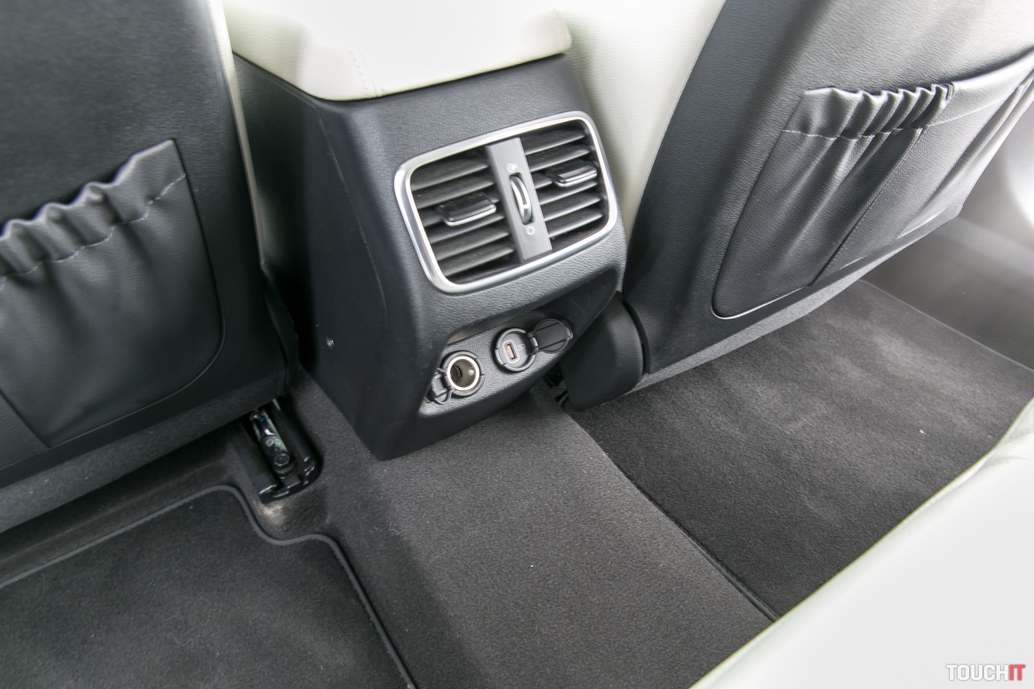 Zaujal nás aj audio systém Harman/Kardon s 8 reproduktormi a 8“-palcovým subwooferom v batožinovom priestore. Zvukové podanie celej zostavy bolo veľmi príjemné a čisté. Z elektrickej výbavy sú dostupné dva USB-A porty (audio + nabíjanie vpredu / nabíjanie vzadu) a tri 12V zásuvky autozapaľovača (vpredu, vzadu, v kufri). Za zmienku stojí aj AUX vstup. V odkladacom priestore pred radiacou pákou má svoje miesto podložka s bezdrôtovým nabíjaním (Qi). Asistenčné systémy mali obsiahle zastúpenie, ale nie všetko bolo podľa našich predstáv. Vo výbave je adaptívny tempomat s automatickým brzdením a pohýnaním (do 10 sekúnd), asistent držania vozidla v jazdnom pruhu, monitorovanie mŕtveho uhla, monitorovanie dopravných značiek (iba rýchlosť a zákaz predbiehania), systém autonómneho zastavenia vozidla v prípade prekážky, upozornenie na pohyblivé prekážky pri cúvaní, automatické parkovanie a základ v podobe ABS, ESS, BAS, ESC a HAC. Nechýba ani elektronická ručná brzda, asistent rozjazdu do kopca a parkovací asistent s 3 kamerami.