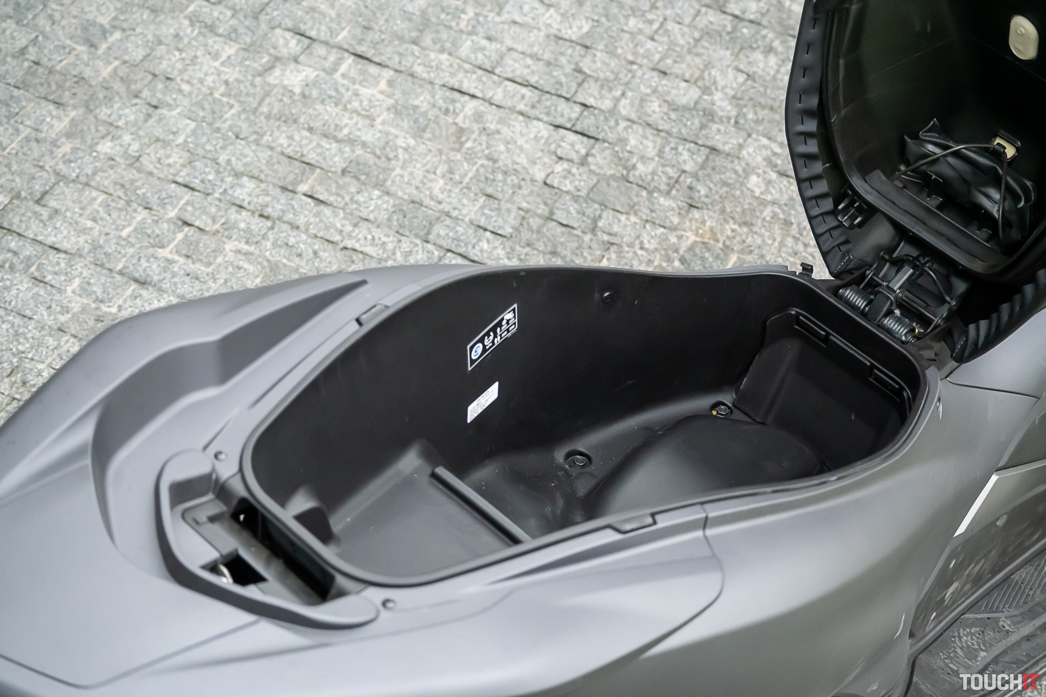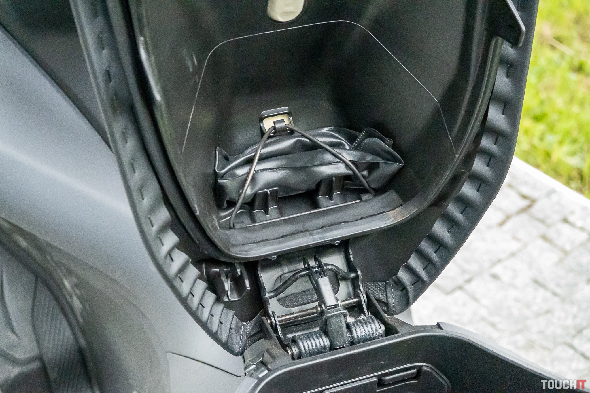 Pod sedlom sa dá dať celohlavová prilba a aj nákup. Odkladací priestor pod sedlom má až 28 litrov. Prikúpiť sa dá aj zadný kufor s objemom 35 litrov a ten stojí 205 eur.