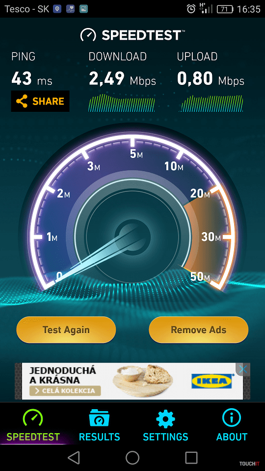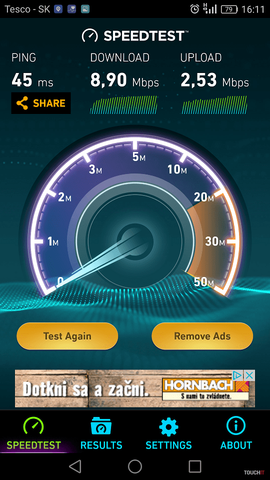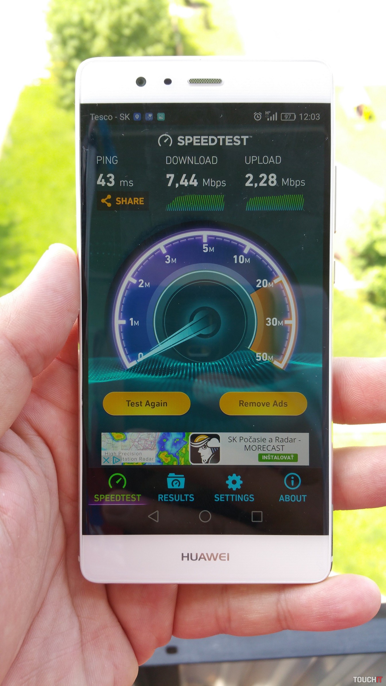 V meraných lokalitách sme dosahovali veľmi dobré výsledky kvality signálu. Takmer všade bol signál plný, občas polovičný. Telefonovanie bolo bezproblémové počas celého testu a aj tam, kde majú iní operátori nedostatok. Z hľadiska pokrytia mobilným signálom a kvality telefonovania sme boli spokojní a nemáme čo operátorovi Tesco mobile v daných lokalitách vytknúť. Režim siete bol v 90 % – 3G (HSPA+)