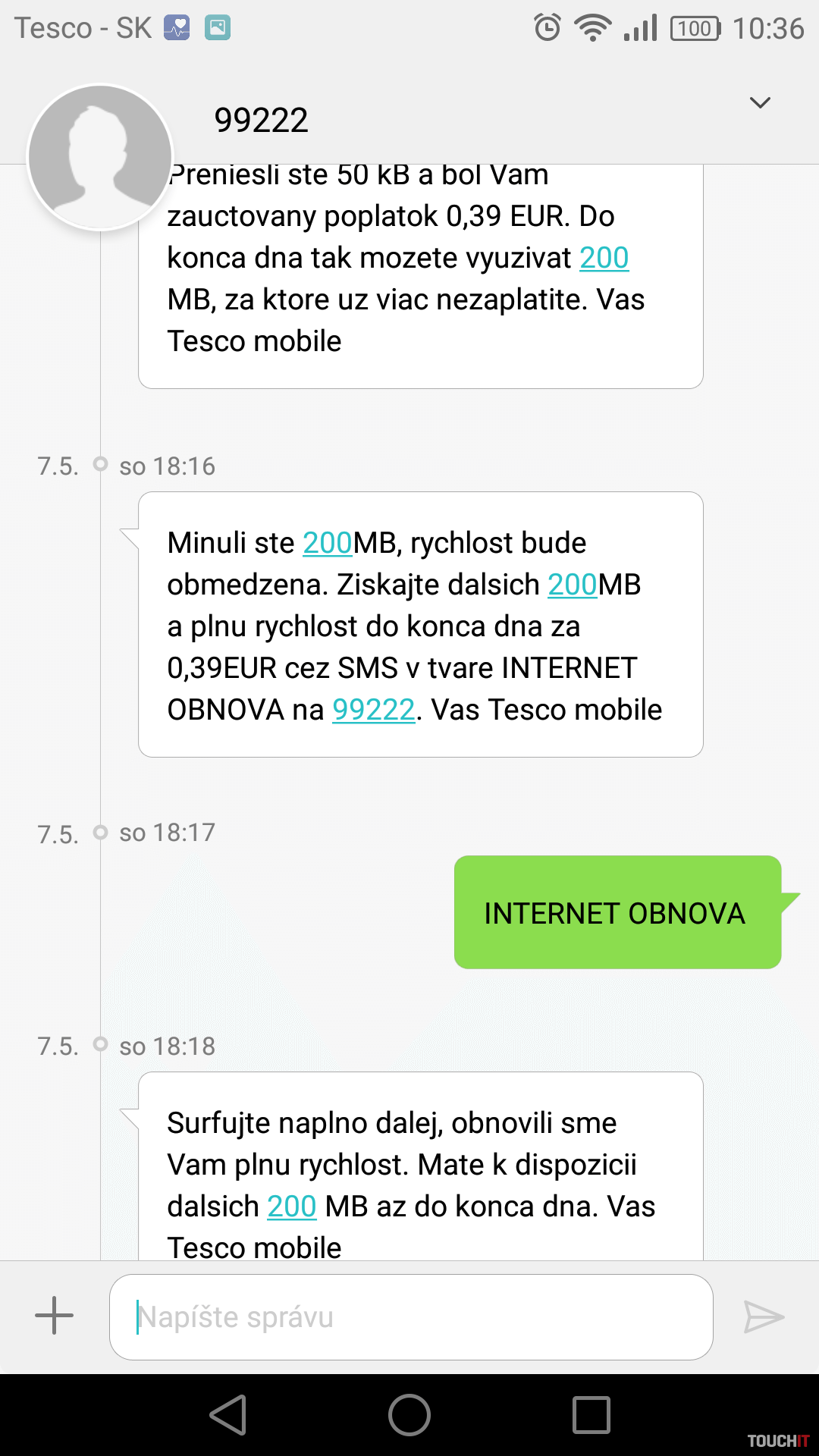 Účtovanie internetu začína po prenesení prvých 50 kB, čím máte dostupných 200 MB dát, až do konca aktuálneho dňa, teda do polnoci. Ak si internet po prečerpaní dát neobnovíte, rýchlosť bude obmedzená na 48 kbps, bez ďalších poplatkov. Nespotrebované dáta sa však do ďalšieho dňa neprenášajú. Uvedené ceny platia v rámci SR, ceny pre roaming sú podrobne rozpísané na stránke operátora.