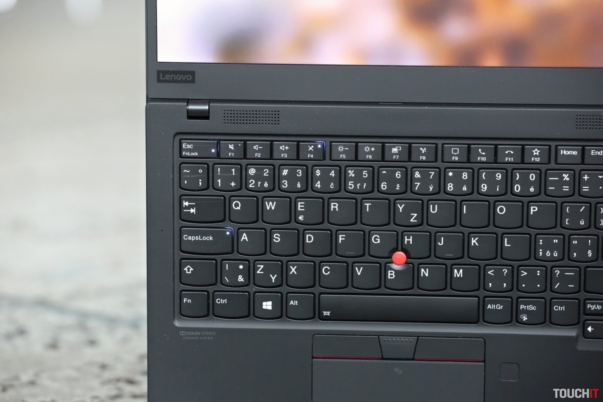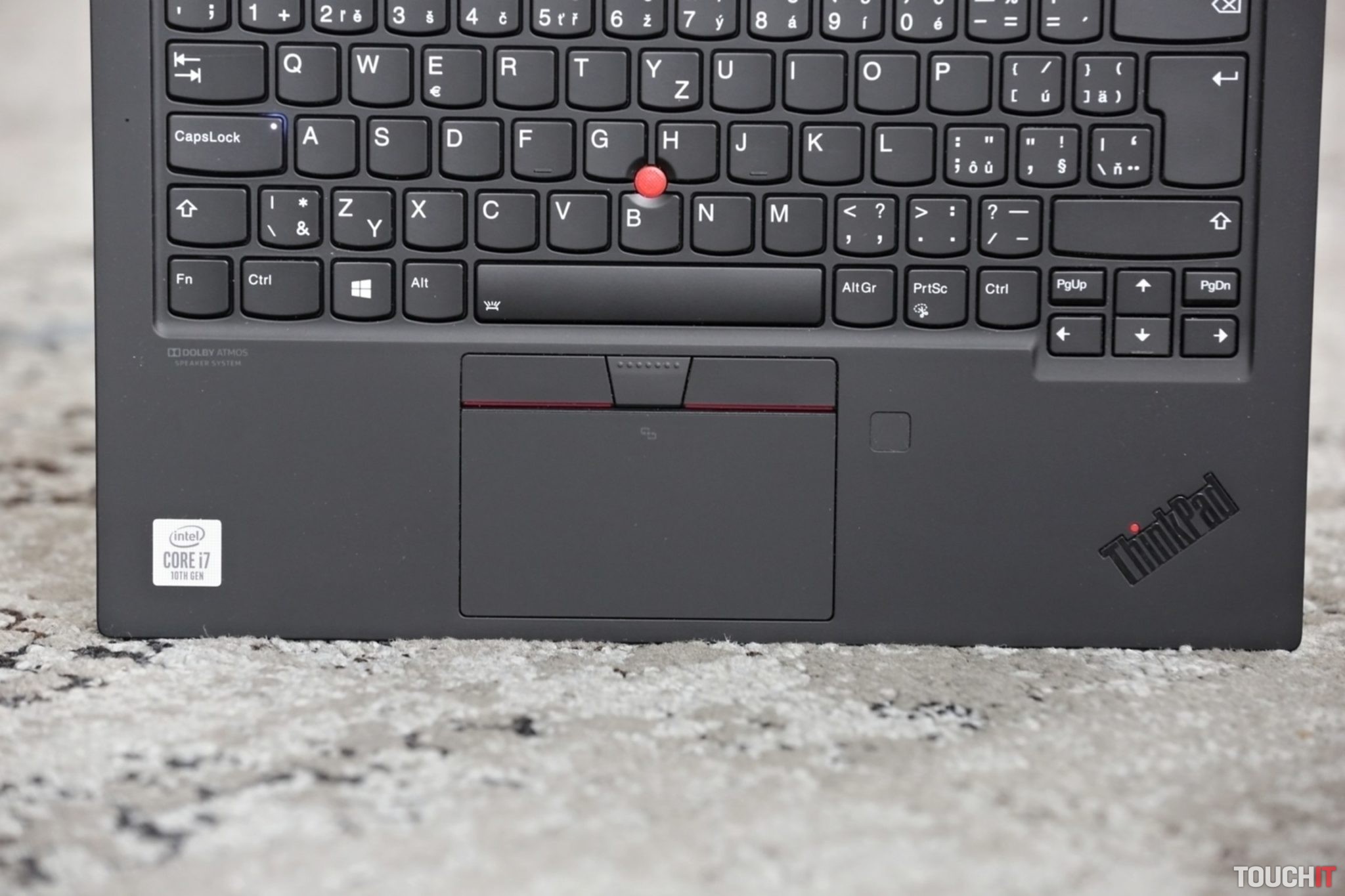 Výrobca ponúka takúto svietivosť aj na Full HD verzii. K tomuto displeju sa prikláňam viac a to z praktického pohľadu. Mať 4K je pekné, aplikácie aj celkovo obsah na displeji vyzerá dobre. Na to, aby som na 14“ rozmere niečo videl, bolo potrebné prepnúť mierku zobrazenia v systéme na 225 %. Čiže niekam na úroveň Full HD, keď zohľadním, čo všetko sa na displej zmestí. Nehovoriac o tom, že mnohé weby som musel zväčšiť na 110 %, aby texty neboli príliš malé. Toto ale platí pre všetky 14“ displeje so 4K rozlíšením. Kto vyžaduje jemný obraz a príplatok za takúto konfiguráciu nie je problém, tak smelo do toho. V opačnom prípade sa viac oplatí Full HD verzia, prípadne niečo medzi a to verzia s rozlíšením 2560 × 1440 px. Tá má svietivosť 300 nitov a je to tiež dostatočná hodnota. Klávesnica je odolná voči poliatiu a má klasické dvojstupňové biele podsvietenie. Je to tradičná klávesnica, ako ju z tejto série poznáte. Tichá a dobre sa na je píše. Oceňujem, že Lenovo sa drží roky toho, čo funguje a nesnaží sa robiť pokusy na ľuďoch neoverenými novinkami, o ktoré by sme možno ani veľmi nestáli. Takisto aj touchpad si drží svoj štandard, najviac oceňujem prítomnosť tlačidiel navrchu. Stále sa dá zatlačiť aj samotný touchpad, ale ozajstné tlačidlá sú ozajstné tlačidlá. Na prihlásenie do systému sa dá použiť IR kamera a vedľa touchpadu je stále čítačka odtlačkov. Kým mnohí upúšťajú od tejto zdvojenej kombinácie a ponúkajú buď infračervenú kameru alebo čítačku, tu je oboje a môžete si vybrať. Webová kamera má elektronickú ochranu proti zneužitiu no a je tu aj fyzický kryt. Stačí ho posunúť a skutočne zakryjete objektív.
