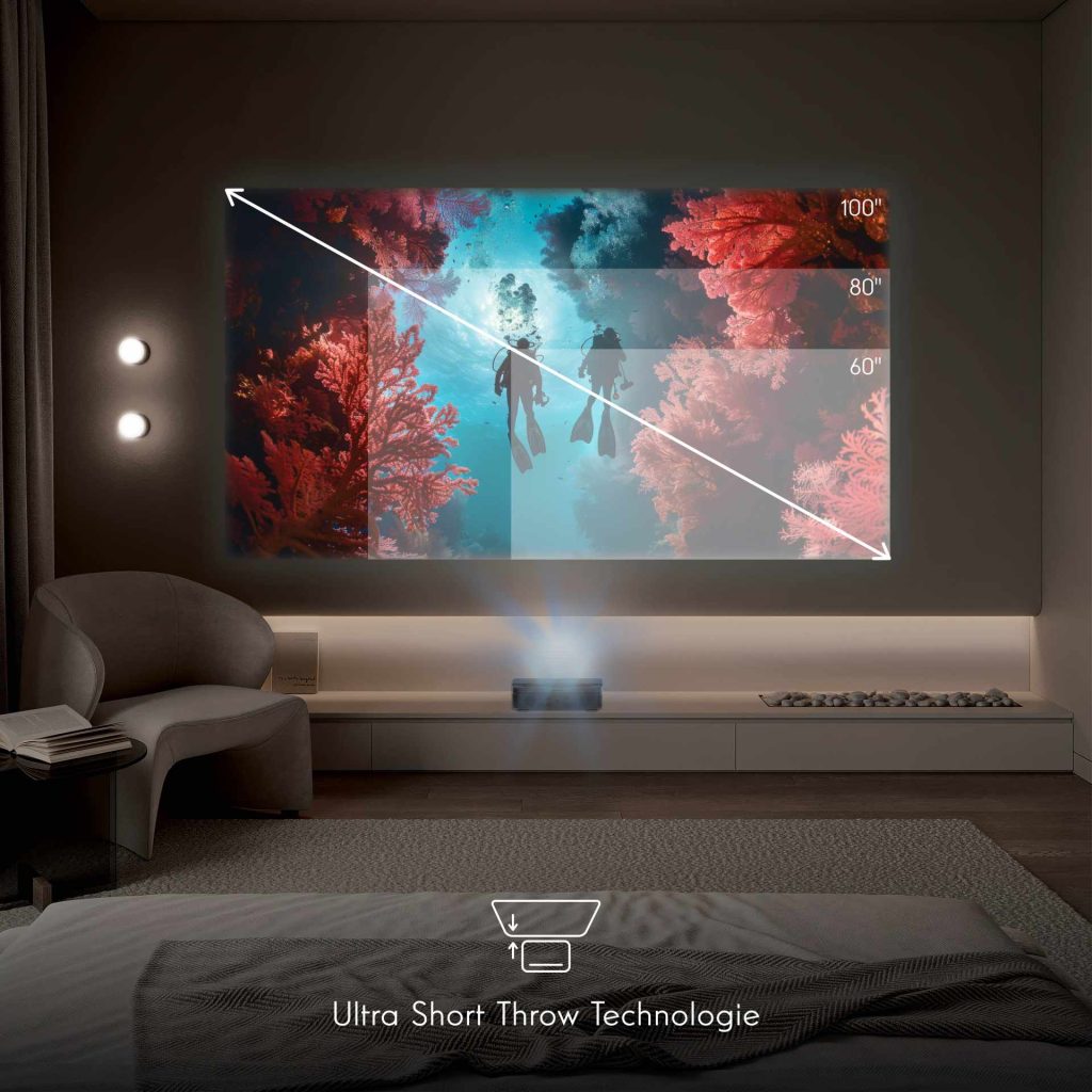 Ide o prenosný inteligentný projektor Google TV Full HD so 100-palcovou veľkosťou obrazu, svietivosťou 350 ANSI lúmenov a batériou s kapacitou 10 000 mAh na 2 hodiny sledovania bez kábla. Či už ide o filmový večer na záhrade, prezentáciu v kancelárii alebo rozprávky v karavane – VEGA prináša veľkú obrazovku všade, kam vás život zavedie.