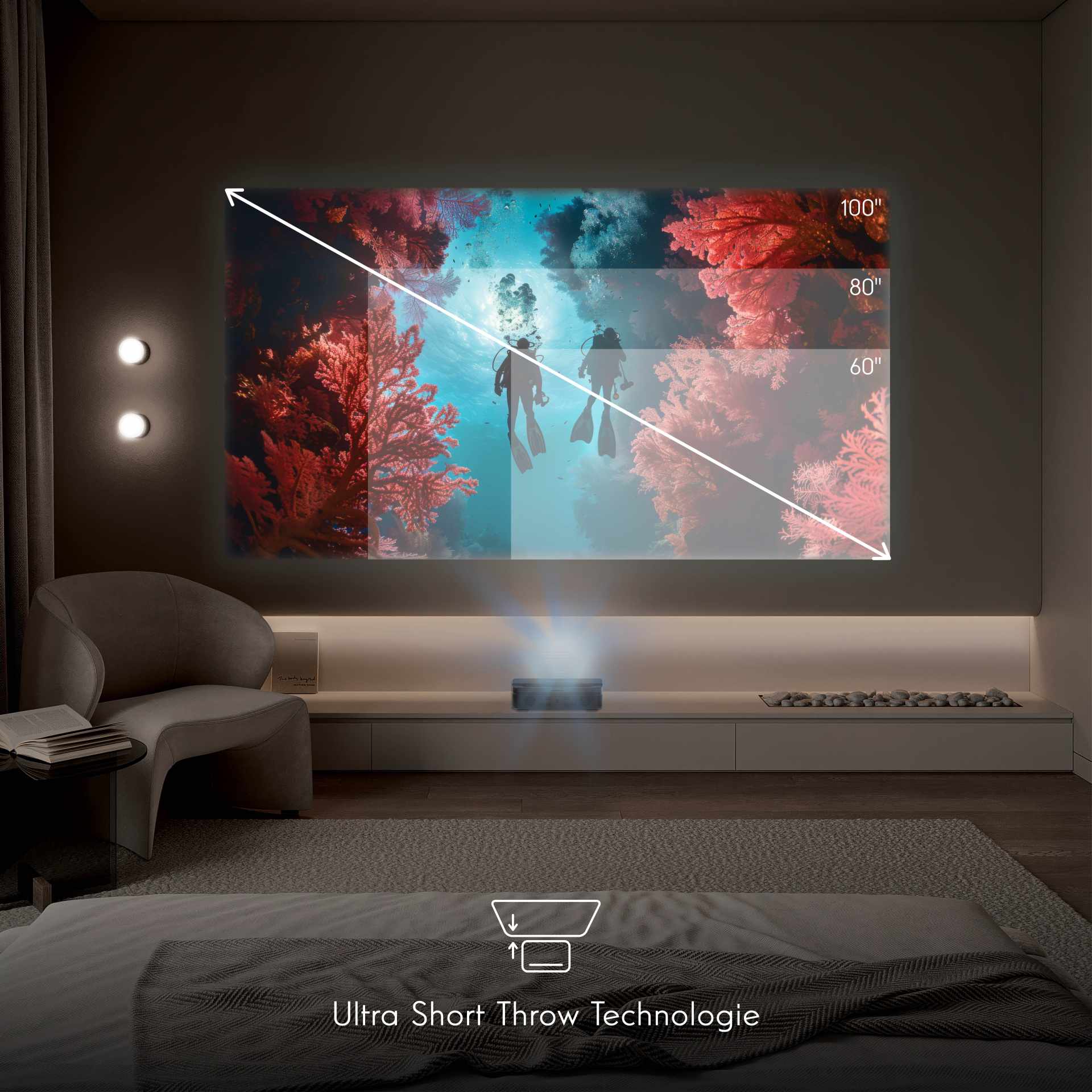 Špičkový laserový projektor Google TV s trojitou laserovou technológiou RGB a dizajnom s veľmi krátkou projekčnou vzdialenosťou. Premietajte až 100 palcov zo vzdialenosti niekoľkých centimetrov. Vďaka svietivosti 600 ANSI lúmenov, technológii Dolby Audio, službe Google TV a 90-minútovej výdrži batérie spája SIRIUS výkon s prenosnosťou.