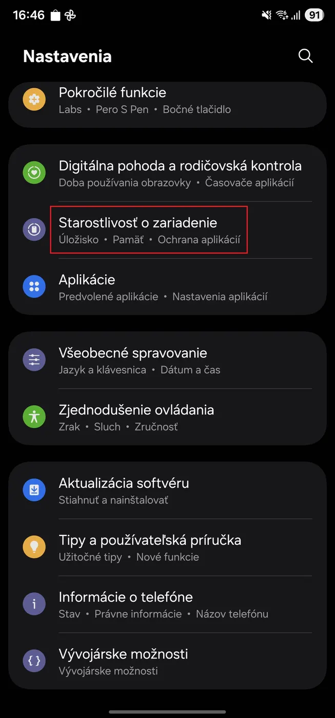- Starostlivosť o batériu a zariadenie (v Nastaveniach): Toto je primárne miesto na optimalizáciu softvéru, sledovanie spotreby batérie, úložiska, pamäte a skenovanie zabezpečenia.
