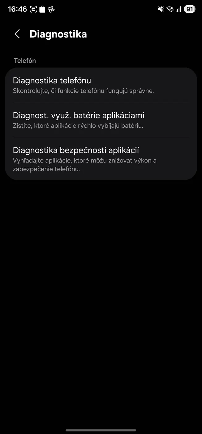 - Tu nájdete položku Diagnostika využitia batérie aplikáciami.