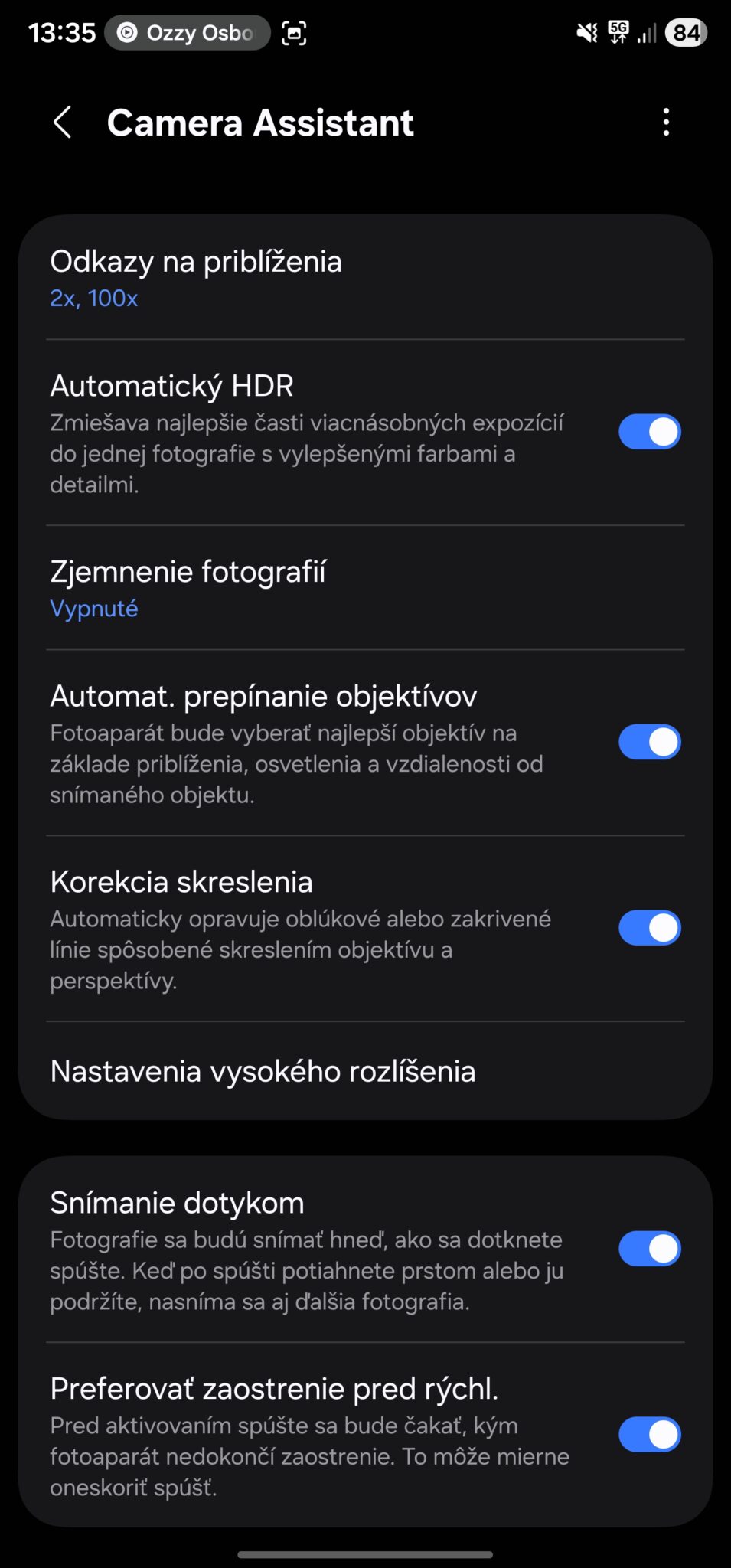 - Preferovať zaostrenie pred rýchlosťou: Pre statické scény a portréty zapnite, fotoaparát bude o niečo pomalší, ale výsledok bude ostrejší.