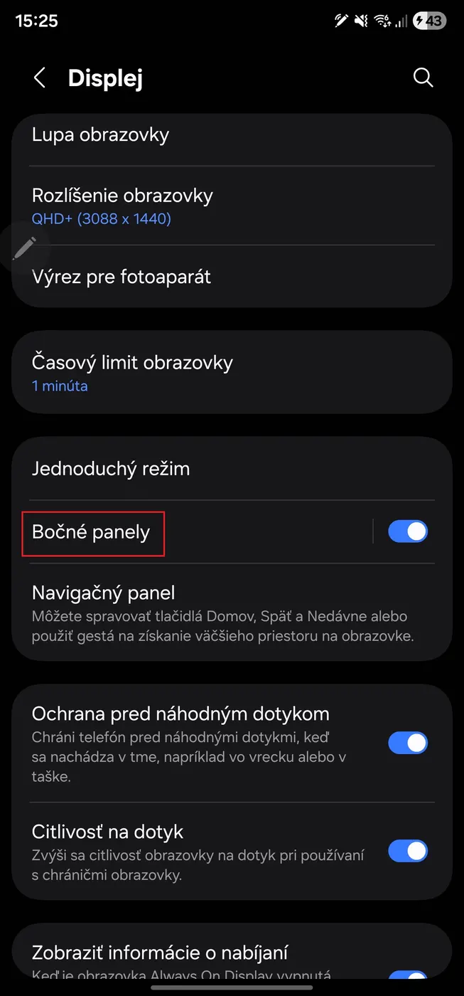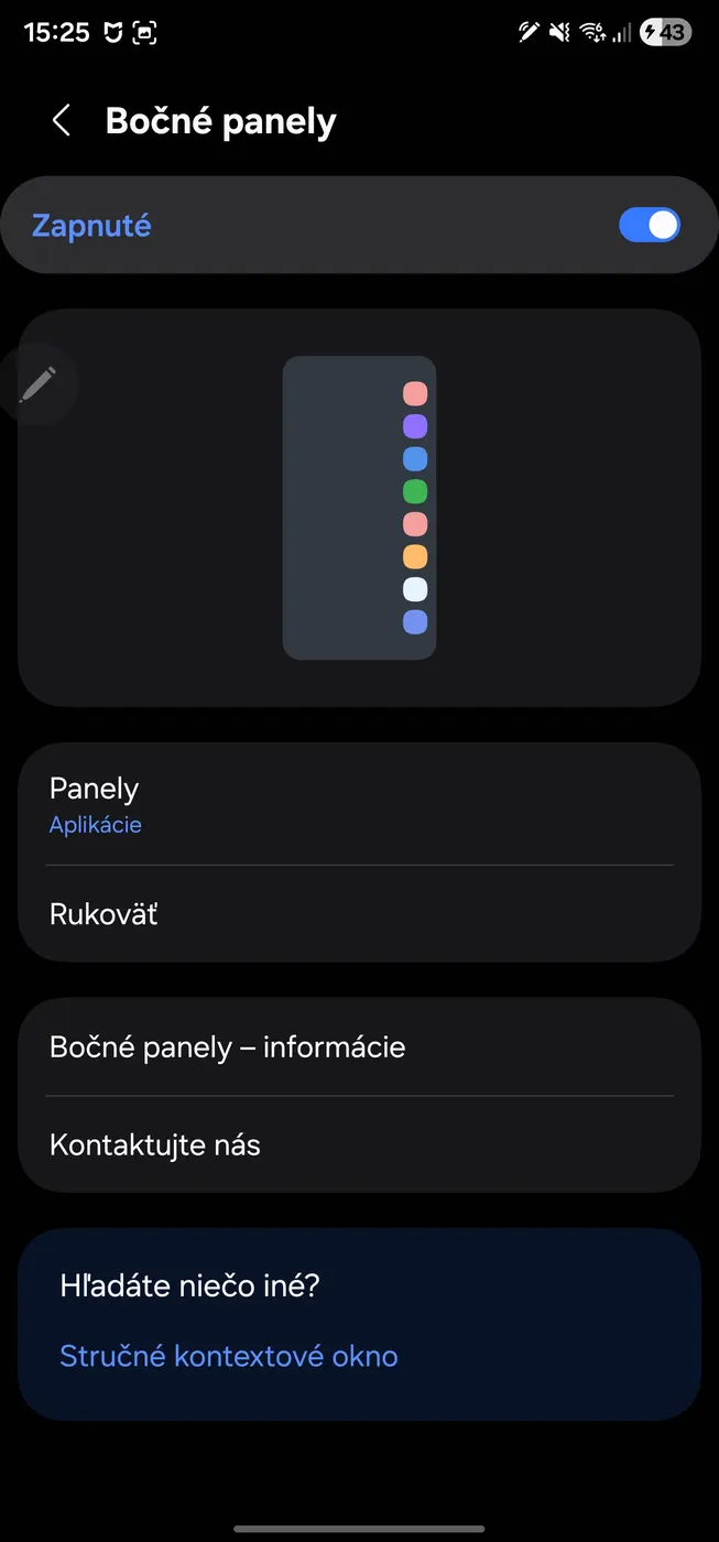 - V nastaveniach Bočných panelov si môžete vybrať, z ktorej strany displeja sa má panel vysúvať (pravá alebo ľavá strana).