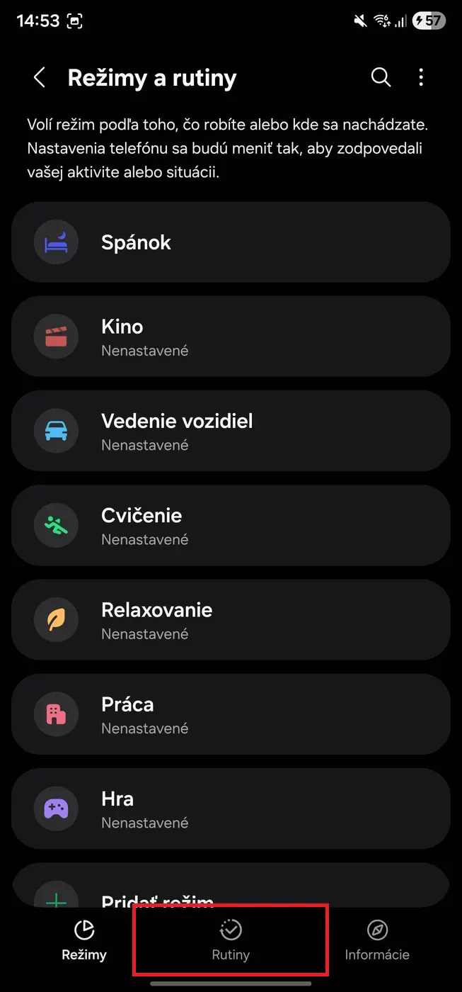 - V dolnej lište prepnite na záložku Rutiny.