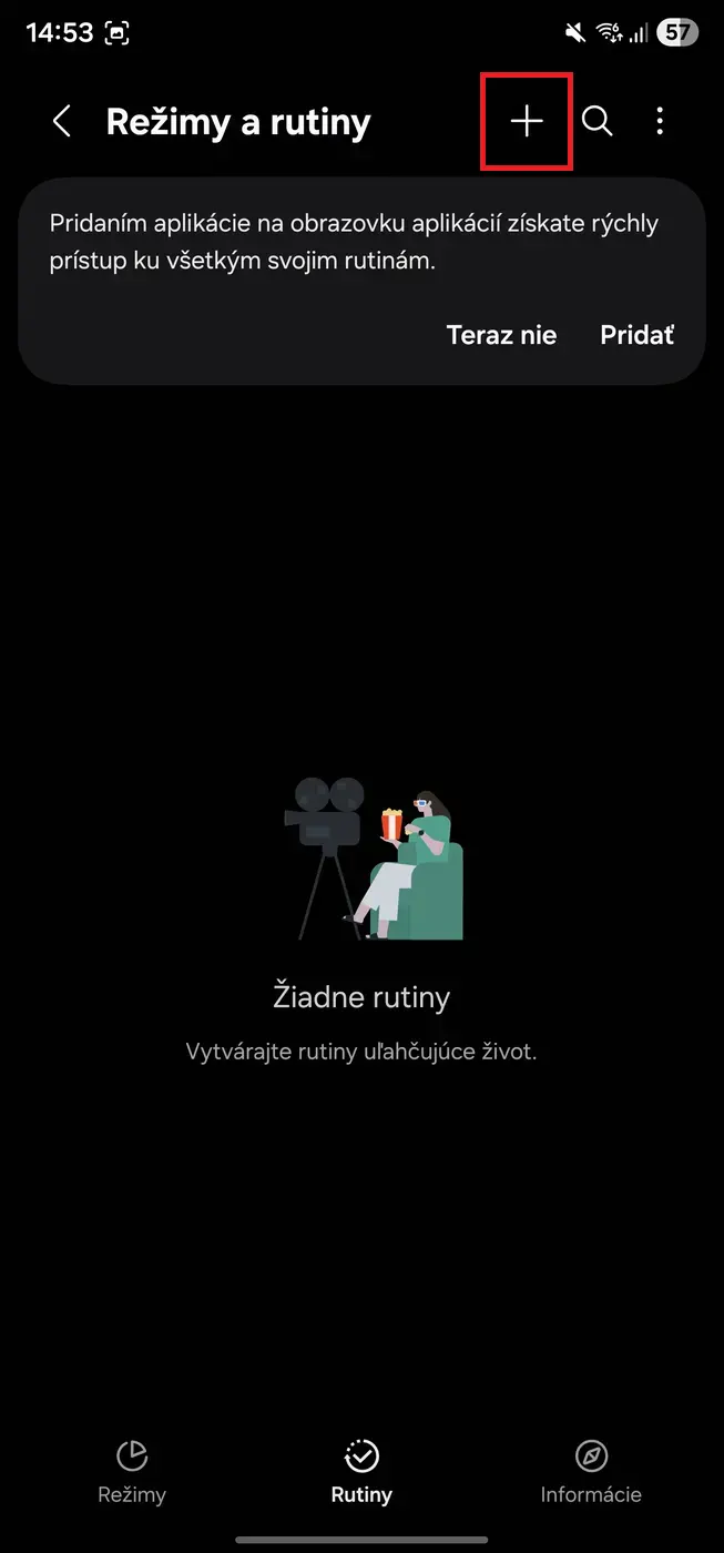 - Vpravo hore klepnite na ikonu plus (+) pre vytvorenie novej rutiny.