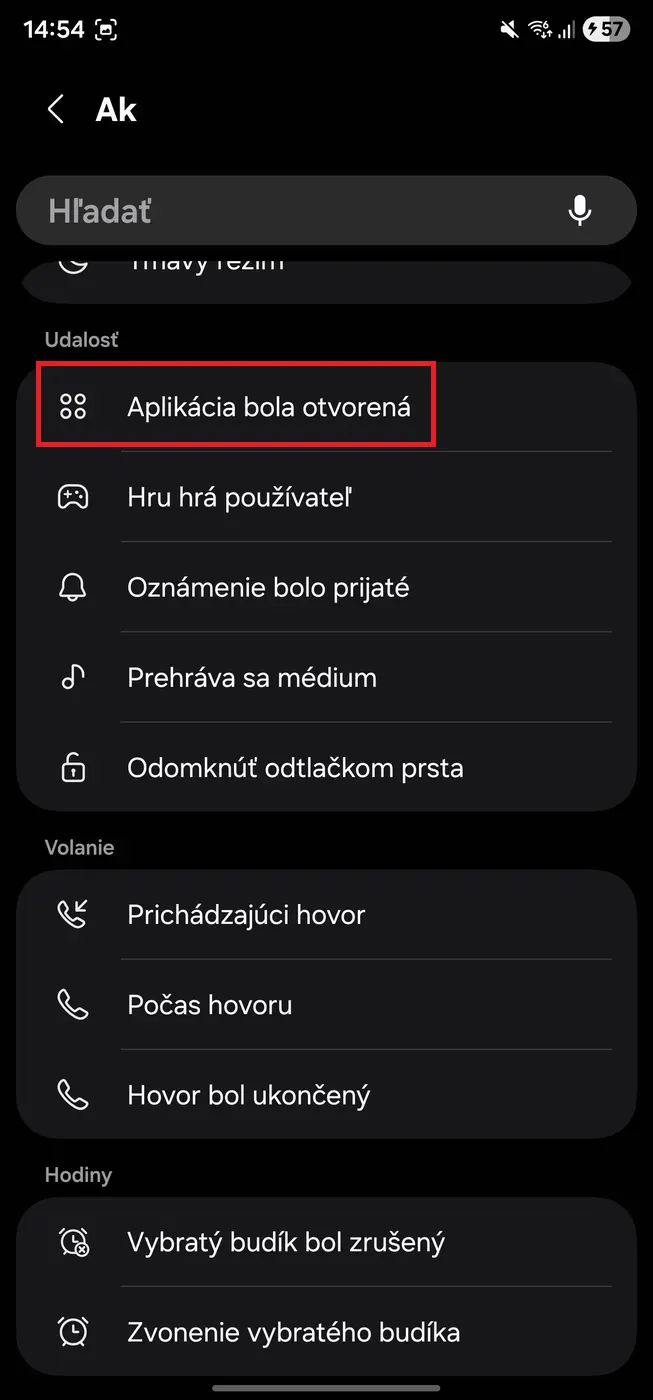 - Kliknite na Pridať podmienku -> vyberte Aplikácia bola otvorená.