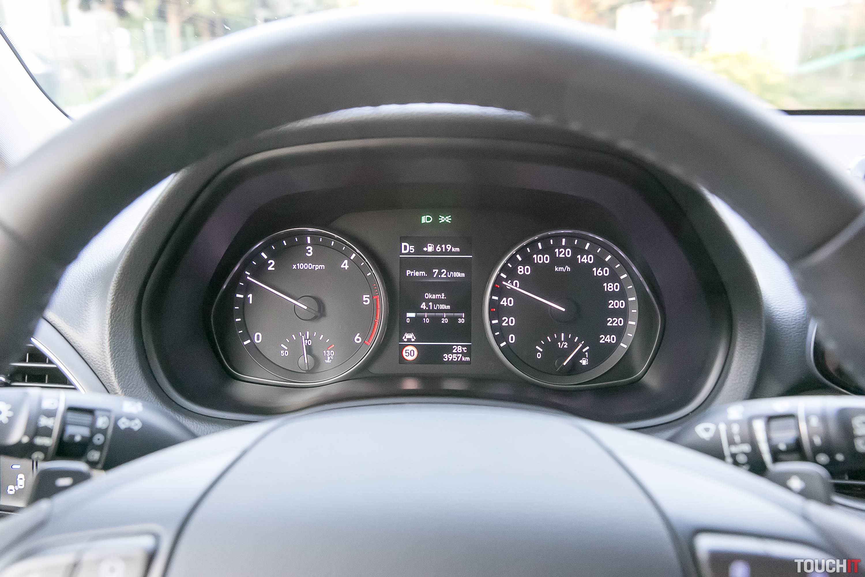 S vozidlom sme najazdili celkovo okolo 1000 km, dosiahli sme priemernú spotrebu nafty 7,1 litra/100 km a priemerná rýchlosť bola 62 km/h. Jazdili sme hlavne dlhšie trate, na diaľnici sa Hyundai i30 kombi cíti ako doma. Na zadných sedačkách je dostatočne veľa miesta, ocenili by sme však nabíjač mobilných telefónov aj pre cestujúcich na zadných sedadlách. K dispozícii je len rozvod teplého alebo studeného vzduchu. Adaptér na cigaretový zapaľovač sa ale nachádza v batožinovom priestore. Tvar a detaily masky chladiča Hyundai sú údajne inšpirované prúdom tečúcej roztavenej ocele.