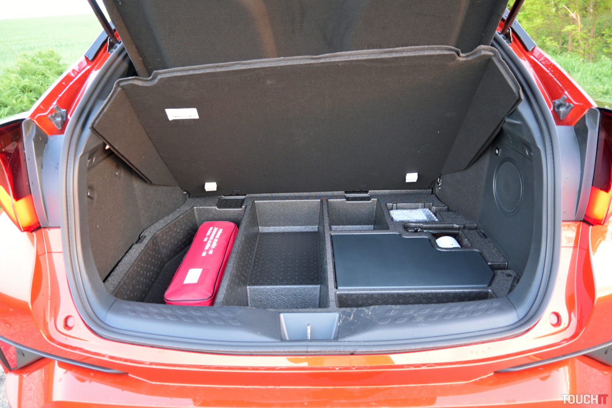 Ocenili sme vyhrievané predné sedadlá a volant. Ten je však vyhrievaný nie na celom obvode, v podstate vás v zime núti držať ho v ruke v pozícii o tri štvrte na tri. Ďalej je tu veľký 8-palcov farebný a dotykový displej Toyota Touch 2, čierny stredový panel a efektný hlavica radiacej páky. Reproduktorový systém je JBL a obsahuje 9 reproduktorov. Samozrejmosťou je Bluetooth pripojenie na hands-free pripojenie mobilného telefónu. Na prístrojovej doske je menší 4,2-palcový displej.