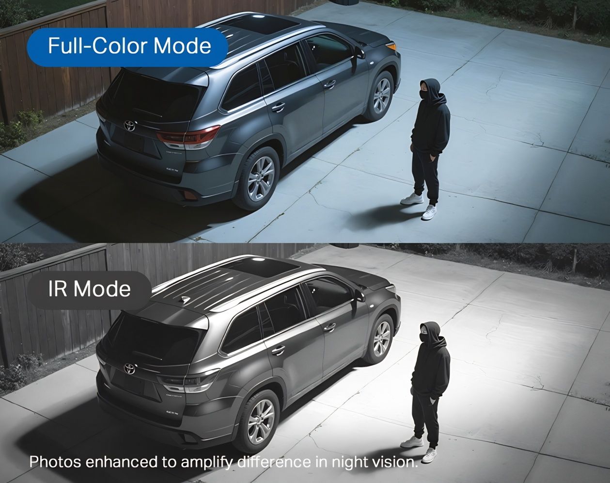 V noci sa Tapo C630 spolieha nielen na infračervený režim, ale aj na farebné nočné videnie s dosvitom do 16 metrov. To zabezpečujú integrované LED reflektory. Výsledkom je detailnejší obraz než pri klasickom čiernobielom IR režime, čo je dôležité najmä pri identifikácii osôb.