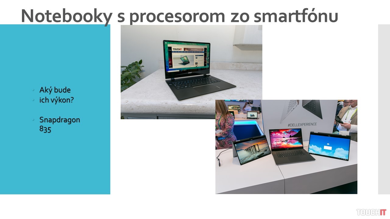 Zmeny sa dejú aj v segmente notebookov. Smartfónové procesory v notebookoch bude celkom bežné. Uvidíme, či sa Snapdragony od Qualcommu budú hodiť na beh s Windows. Síce sa hovorí o extra dlhej výdrži na batériu (až 26 hodín). Otázkou bude rýchlosť systému. Pamätáte si ešte na netbooky? Na batériu vydržali 2× toľko, čo bežný notebook. Pracovať sa na nich ale naozaj nedalo.