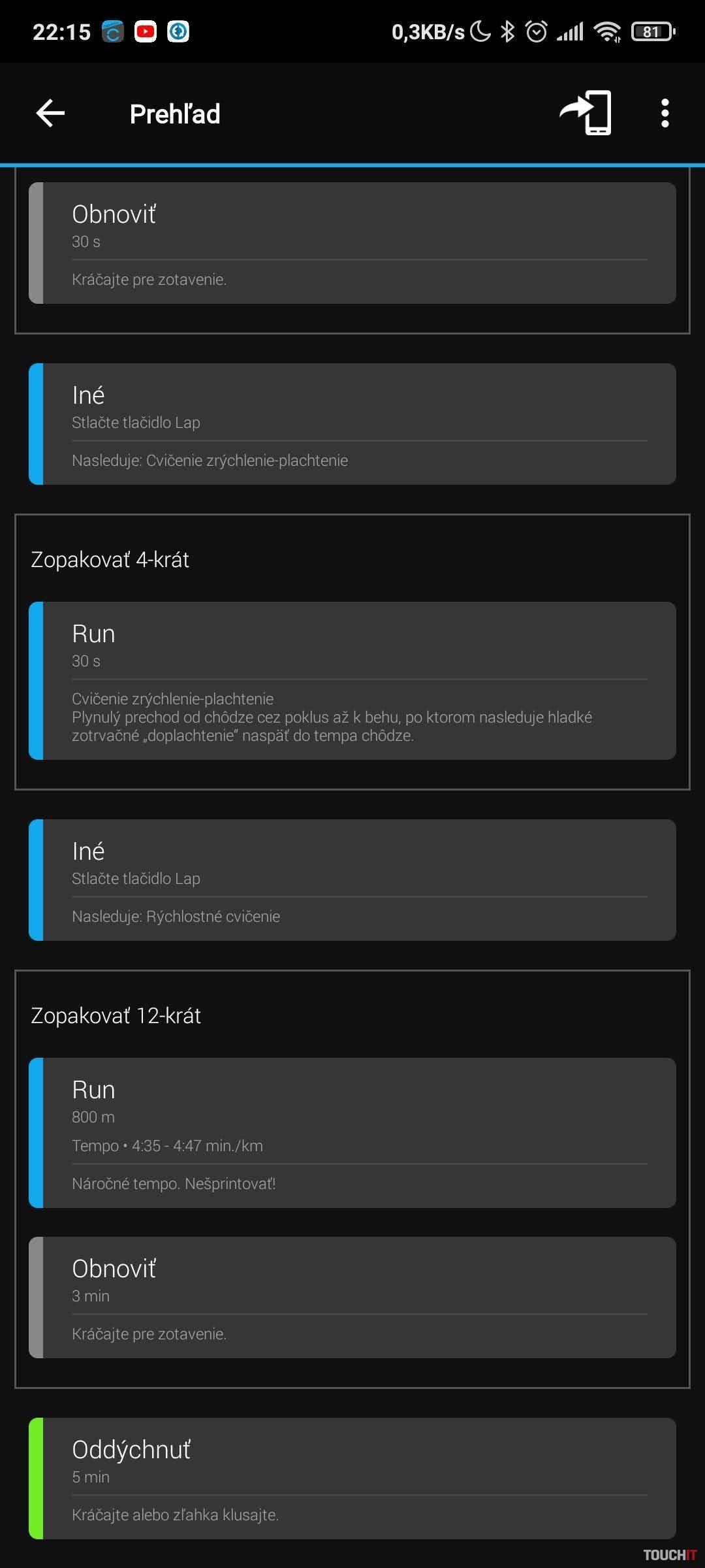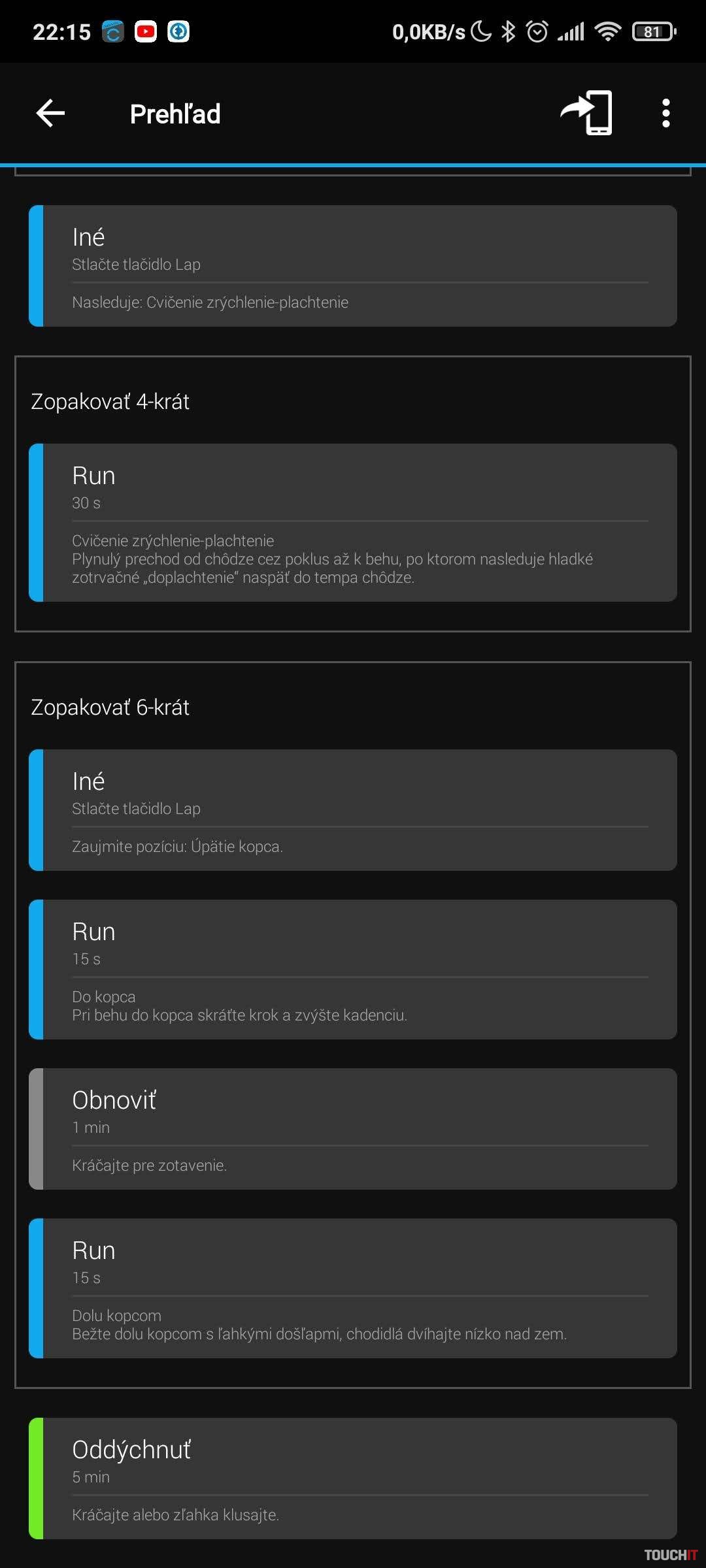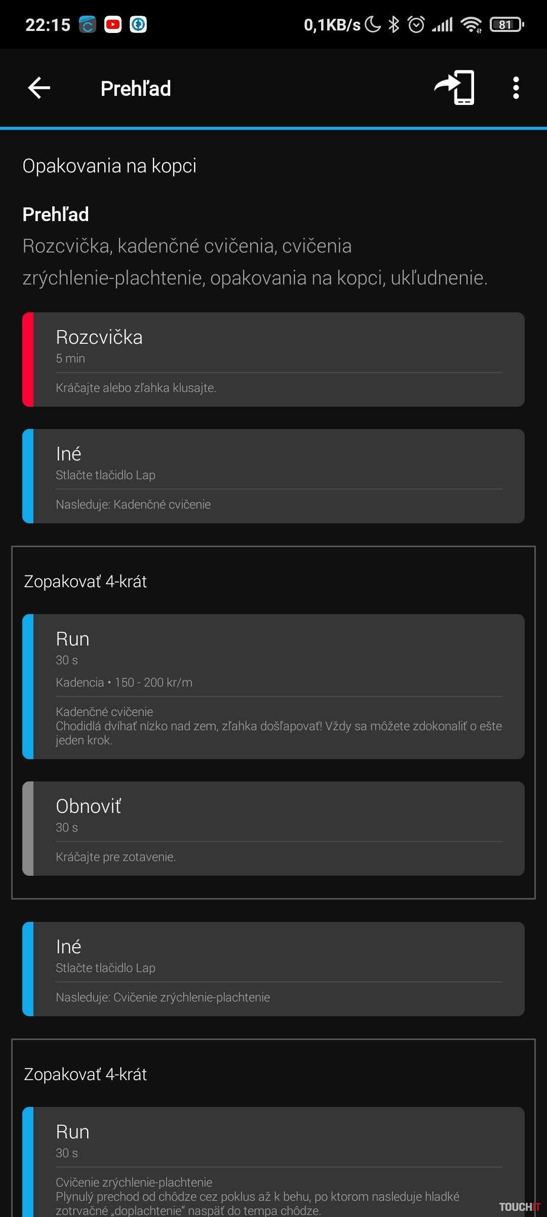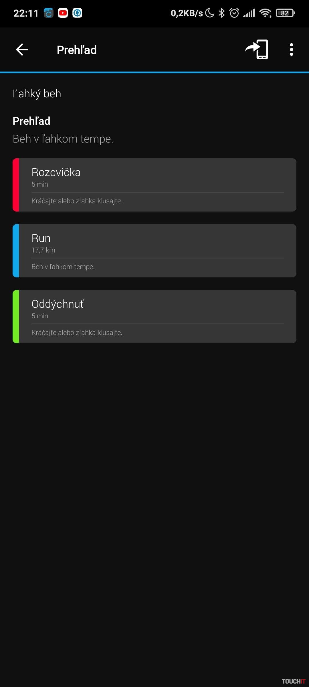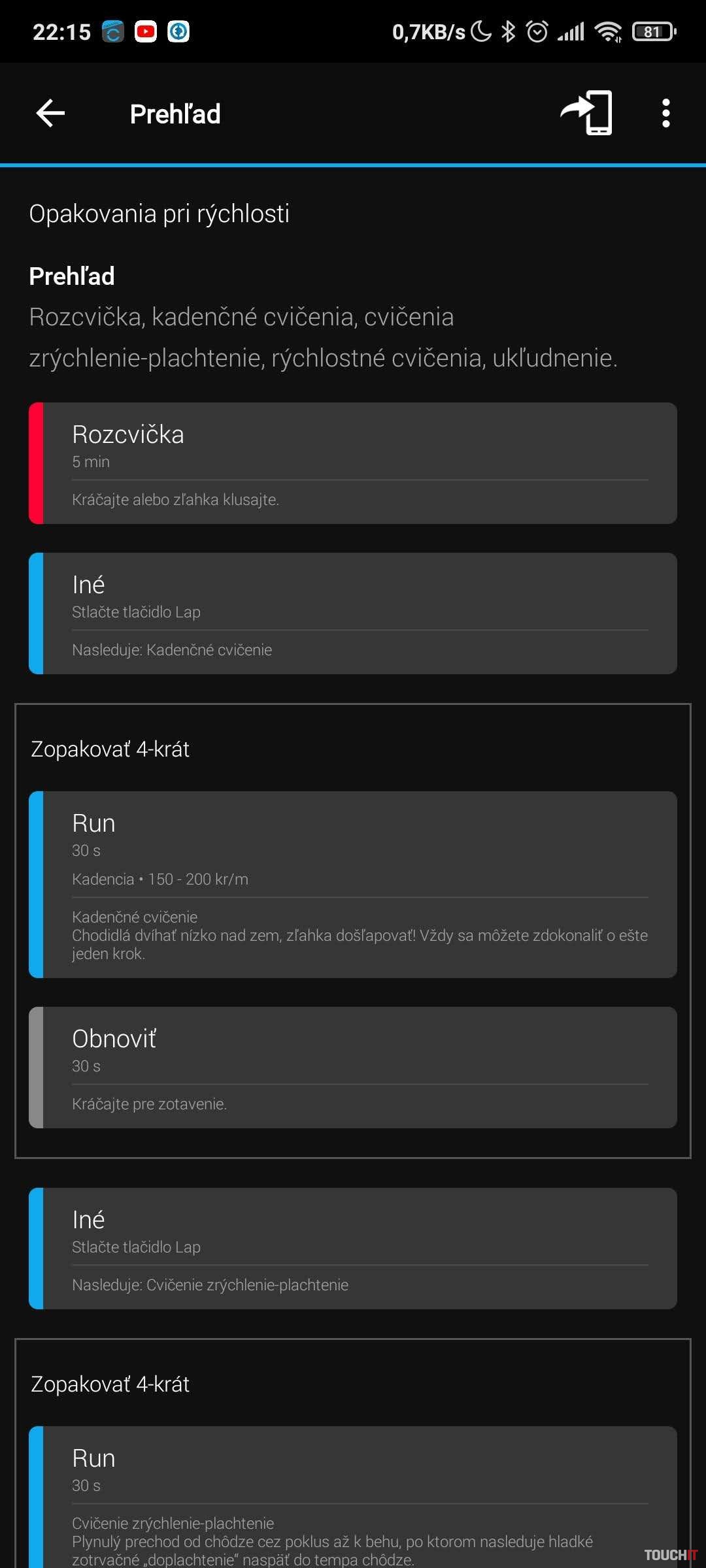 Po zadaní základných vstupných informácií je potrebná synchronizácia aplikácie s hodinkami, aby sa tréning preniesol do hodiniek, ktoré budete sledovať oveľa častejšie ako pri bežnom behu. Hodinky nezabudnite synchronizovať vždy pred a po tréningu.Porovnávací beh
