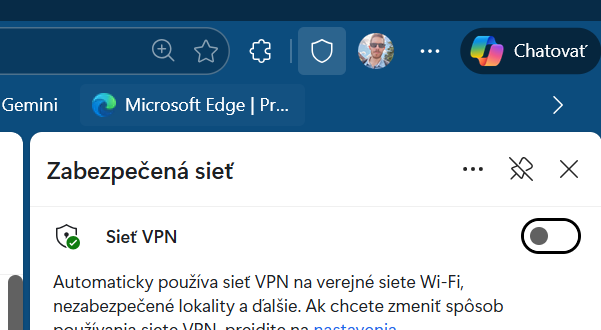 Všetky nastavenia nájdete v prehliadači, na rýchle zobrazenie karty VPN zadajte do adresného riadka adresu: edge://settings/privacy/security