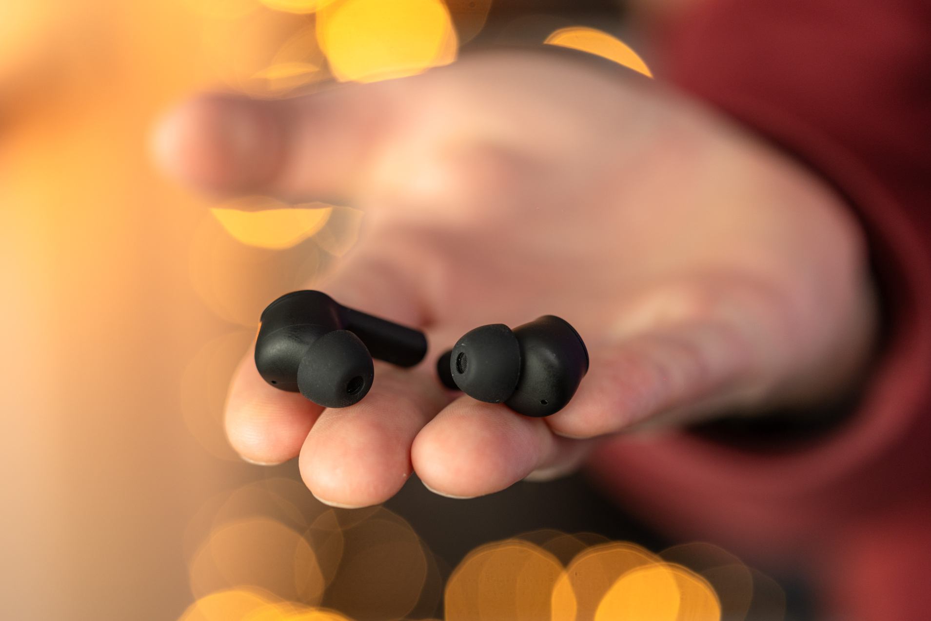 TWS slúchadlá s výbornou cenou a aktívnym odhlučnením. Vhodné aj na športovanie. Bez podpory aplikácie – všetko sa ovláda cez dotykové plochy.