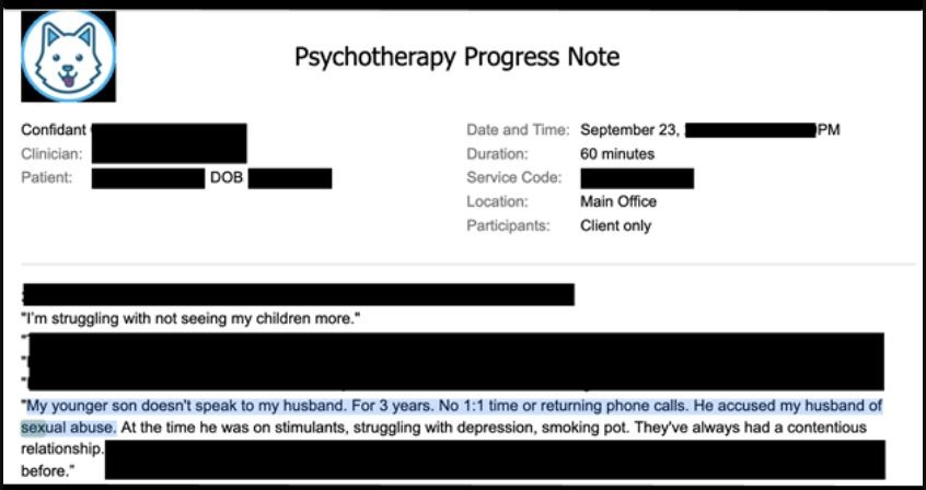 Medzi údajmi boli kontaktné údaje jednotlivých pacientov, informácie o poistení, vodičské preukazy, rodinná história aj popis traumatických zážitkov konkrétnych pacientov. Ďalej tu boli zoznamy predpísaných liekov, karty zdravotnej starostlivosti ale aj audionahrávky a textové prepisy rozhovorov pacientov s lekármi.