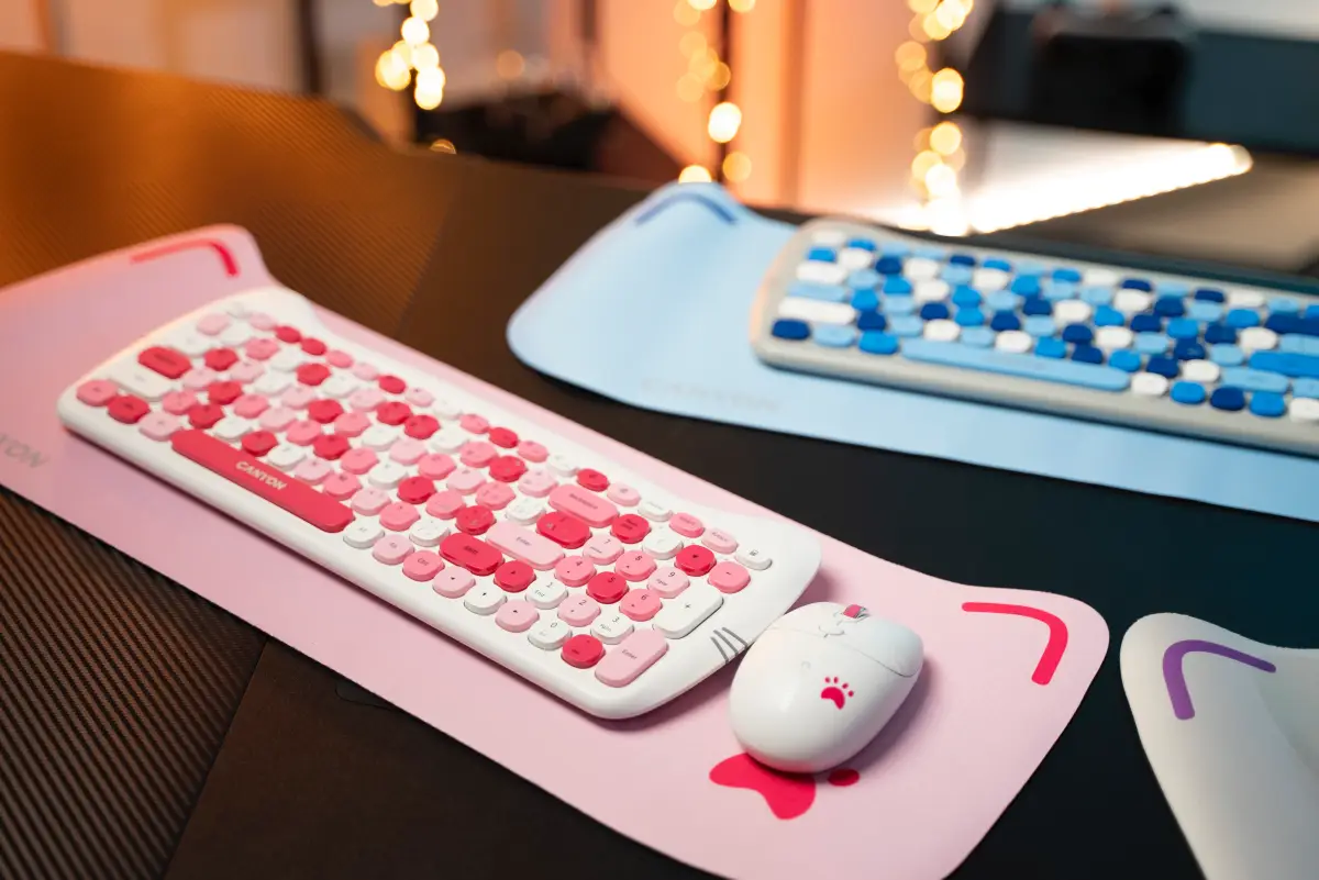 Pre niekoho to môže byť príliš veľkým gýčom, no ja som si kombo klávesnice s myšou zamilovala. Dizajn tejto klávesnice, myši aj podložky je netradičný, ako už názov napovedá, celkovo sa ladí do mačacej témy. Canyon sa tu pekne vyhral s farbami a k dispozícii je ružový, modrý a fialový set. Farby týchto setov sú živé a bezpochyby oživia pracovný priestor v detskej izbe či pracovni.