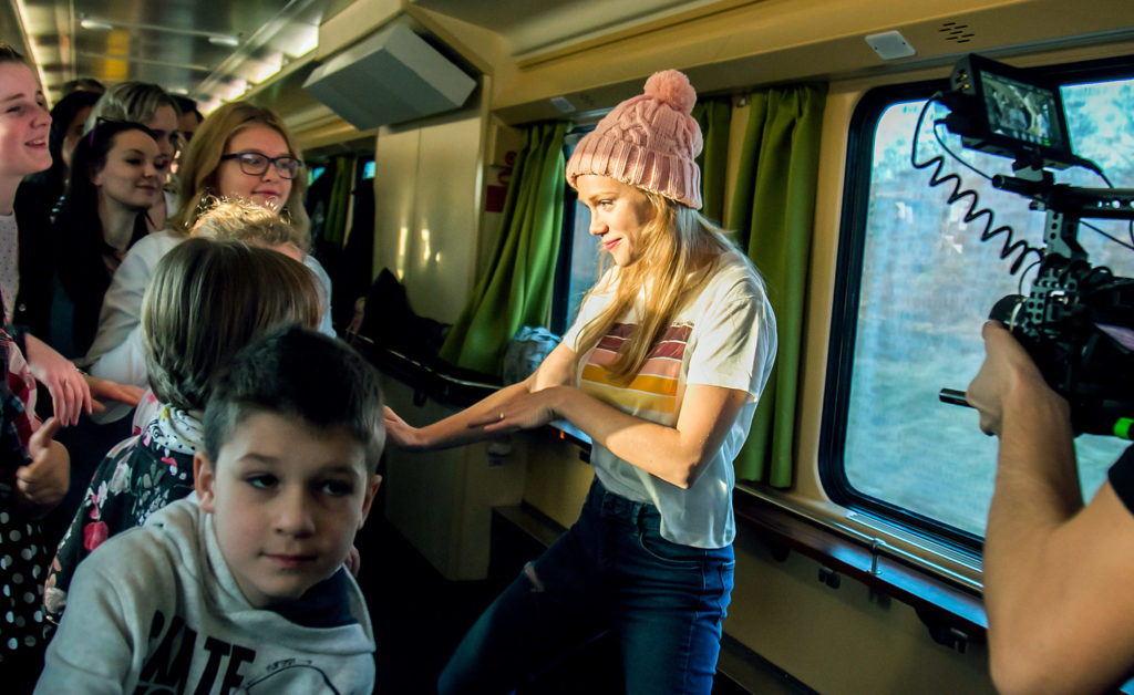stovkou zamestnancov ZSSK. To, čo sa začína ako obyčajná cesta, sa cez výpočet všetkých výhod, ktoré so sebou cestovanie vlakom prináša, postupne mení až na spontánnu párty v spoločenskom