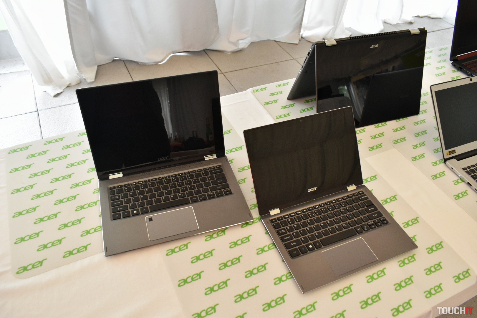 Vľavo notebooky Acer Spin a Swift, vpravo Acer Switch