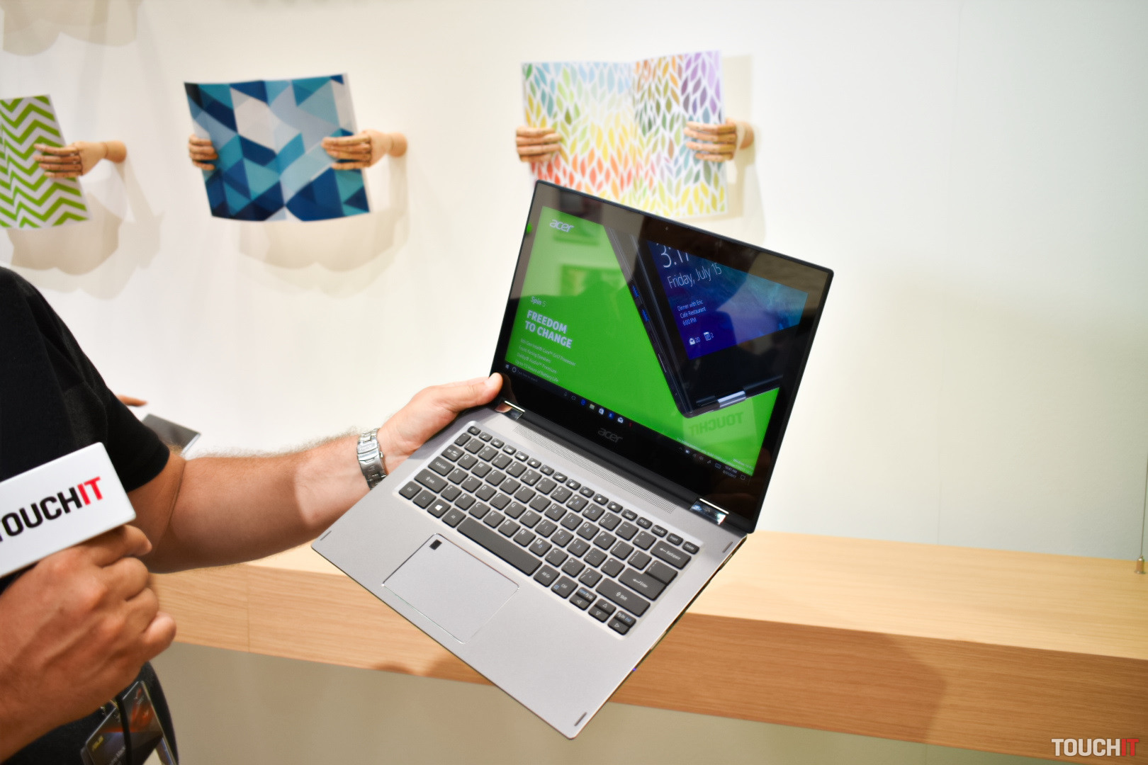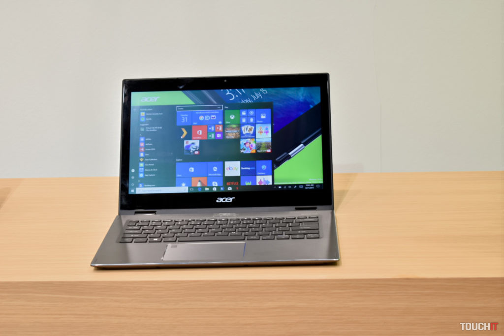 Acer Spin 1 v detailoch, na posledných dvoch fotografiách aj Acer Spin 5 so snímačom odtlačkov prstov
