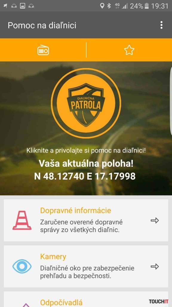 Aplikácia Pomoc na diaľnici je určená pre privolanie Diaľničnej patroly prostredníctvom volania alebo SMS s presnou lokalizáciou polohy motoristu.