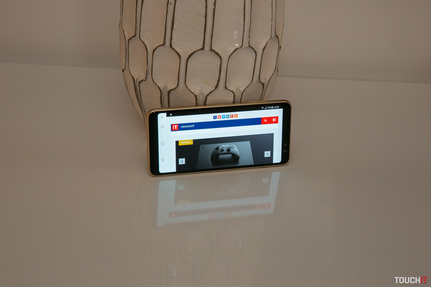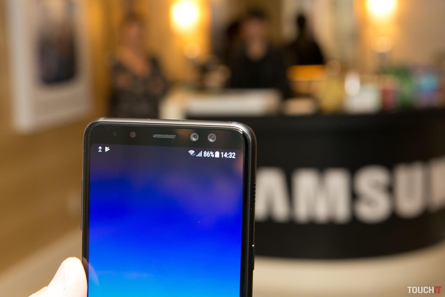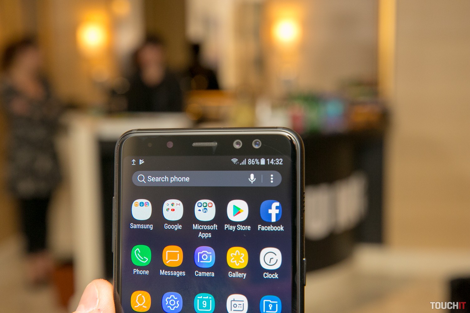 Pocit z držania telefónu Galaxy A8 v ruke je dobrý, určite sú ľudia, ktorým sa bude pozdávať, že hrany telefónu nie sú zaoblené, ako je to pri Galaxy S8 a Note8. Výhodou je aj to, že telefón sa v ruke nešmýka. Uhlopriečka displeja má 5,6 palca s už zabehnutým pomerom strán 18,5:9. Je evidentné, že tento pomer strán už trh prijal a argument, že pre tento formát neexistuje obsah dokázal stráviť. Samsung pri strednej triede evidentne vychádza z toho, že používatelia si vyberajú na základe značky, ceny, výdrže na batériu a toho, ako telefón fotí. Práve preto je tu pomerne veľká kapacita batérie 3000 mAh s tým, že sa dá veľmi rýchlo nabiť. Aj 10-minútové nabíjanie počas dňa vám pridá na výdrži niekoľko hodín. Určite vydrží na viac ako jeden deň pri intenzívnej prevádzke. Z hľadiska fotenia tento raz stavil Samsung na obľubu selfie fotiek, ktoré sú u mnohých používateľov už podstatnejšie ako fotky zadnou kamerou. Predná dvojica kamier predstavuje kombináciu 16 Mpx + 8 Mpx a s touto výbavou sa dajú robiť efektné selfie fotky s rozostreným pozadím. Fototest si necháme na dobu, keď budeme mať telefón v ruke na Slovensku a budeme ho mať možnosť porovnať s iPhone X. To bude zaujímavý súboj. Zadná kamera má 16 MPx kameru, skúšali sme s ňou robiť aj video. Aj v tomto prípade výrobca použil celkom úspešnú stabilizáciu.